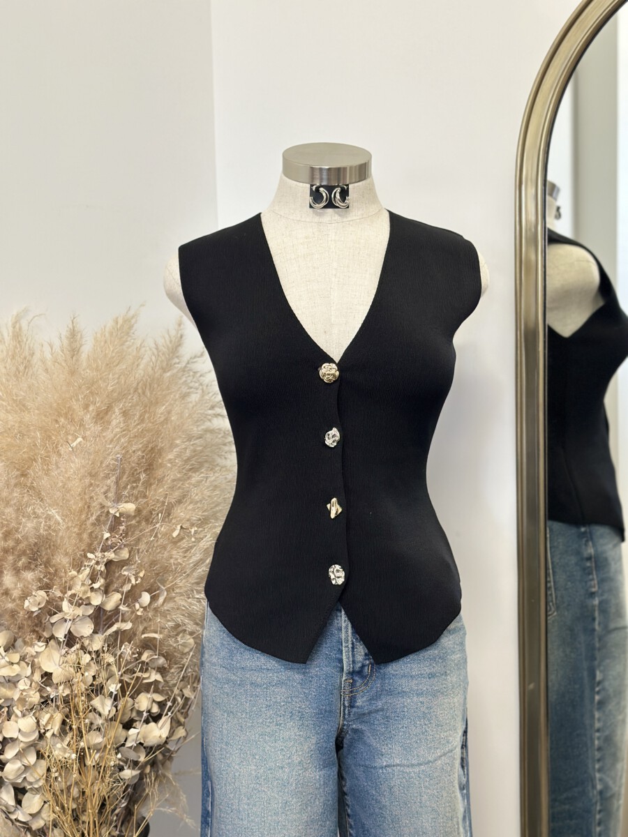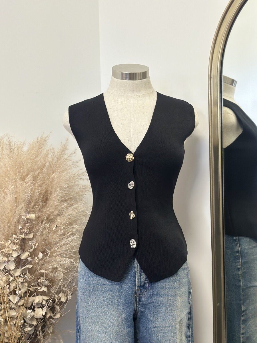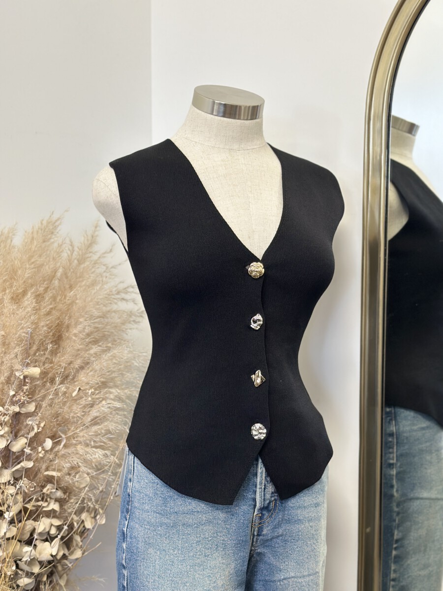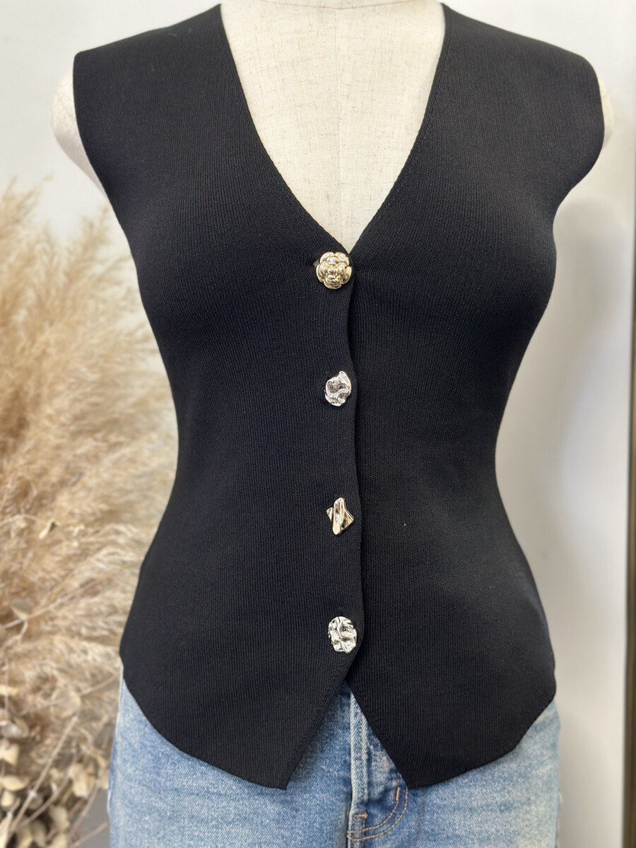 FEATURES - Deep V Neckline & Gold / Silver Buttons