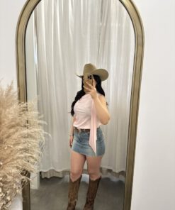 Be the first to review “” Solene ” Satin Scarf-Detail One-Shoulder Top ( Light Pink )” Cancel reply