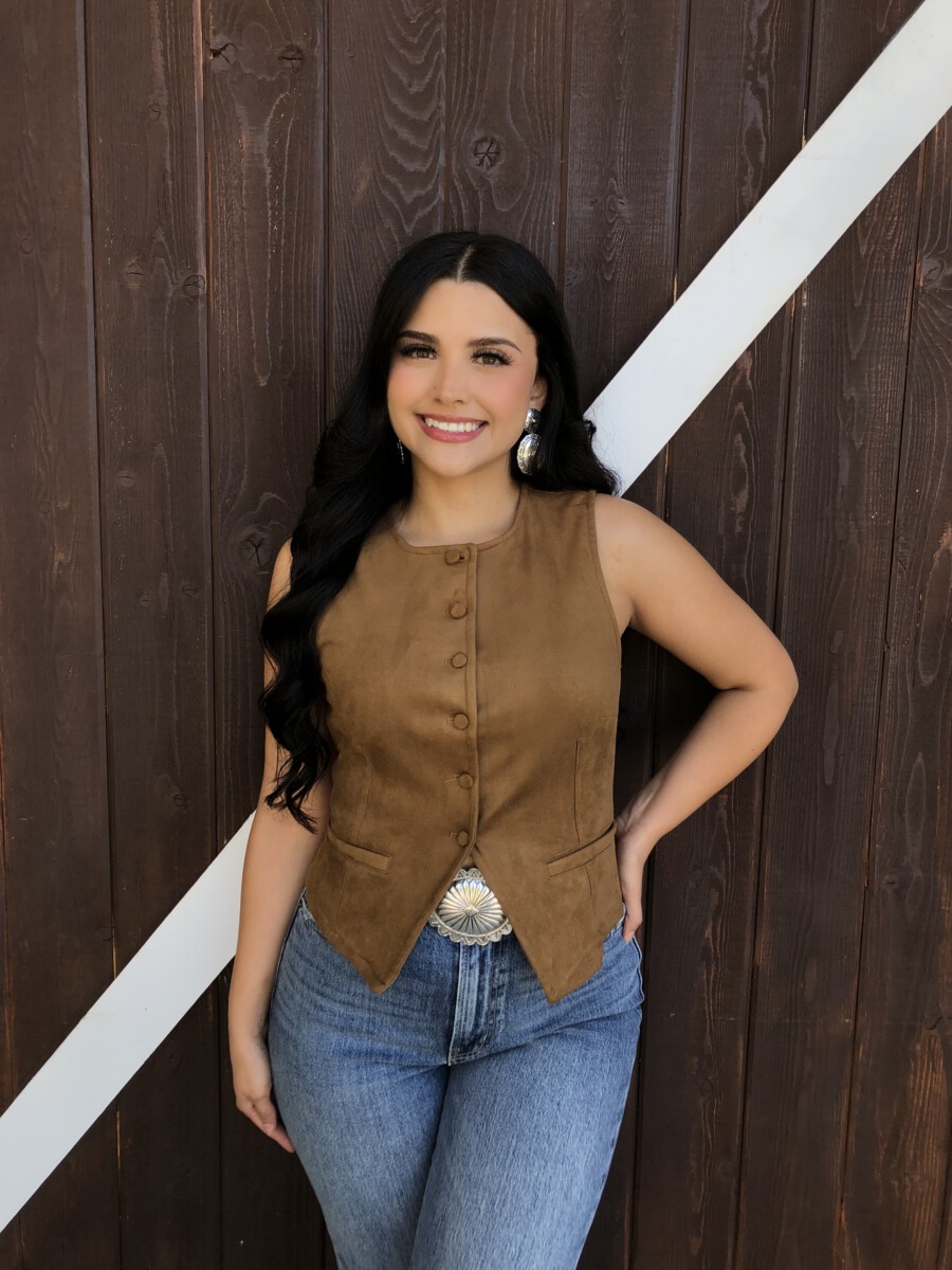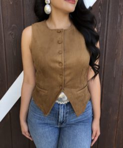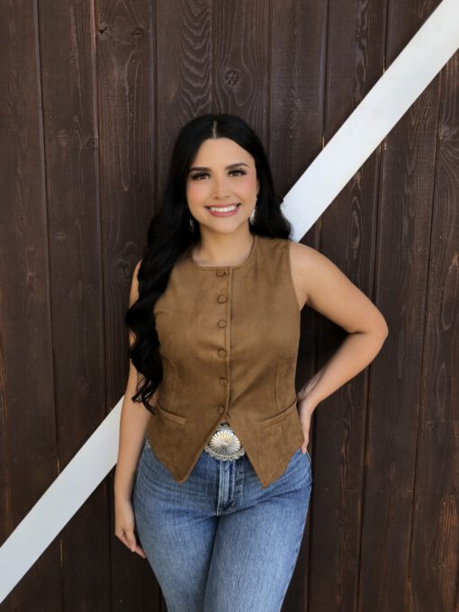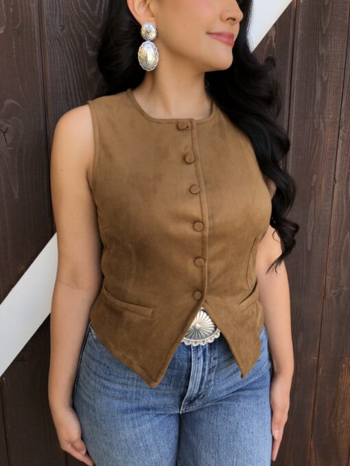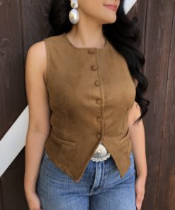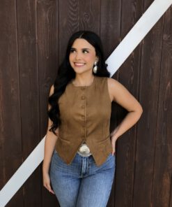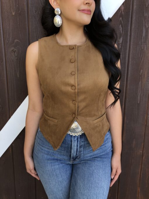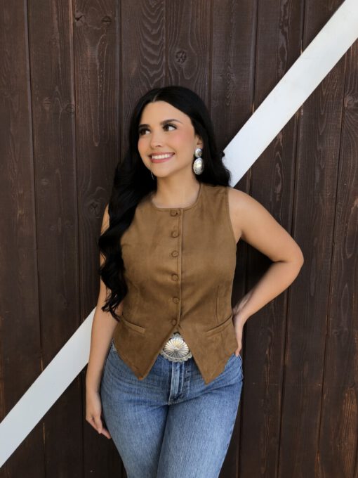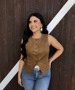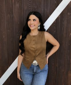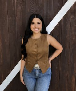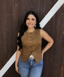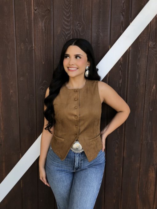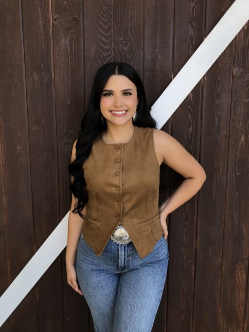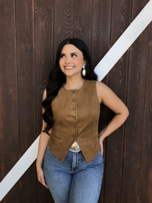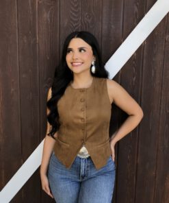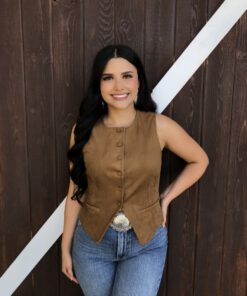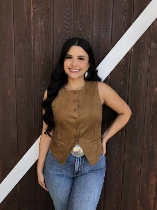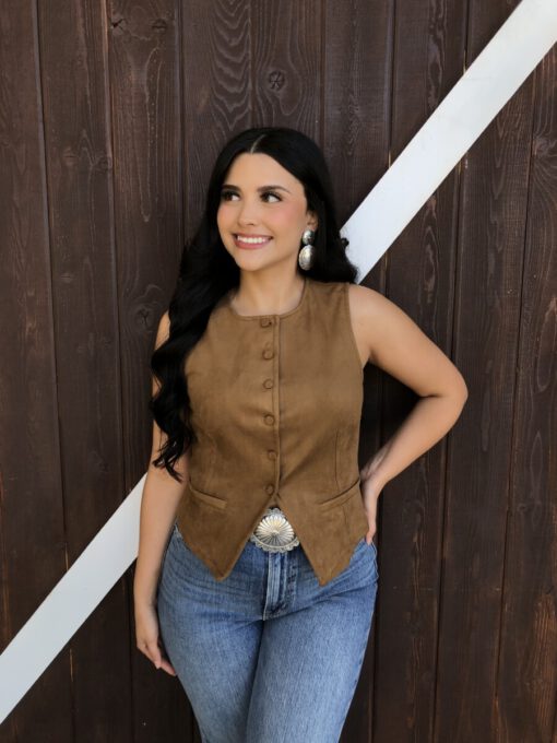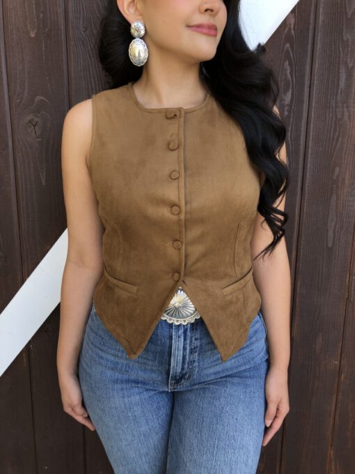” Tammie ” Faux Suede Vest Top ( Camel )