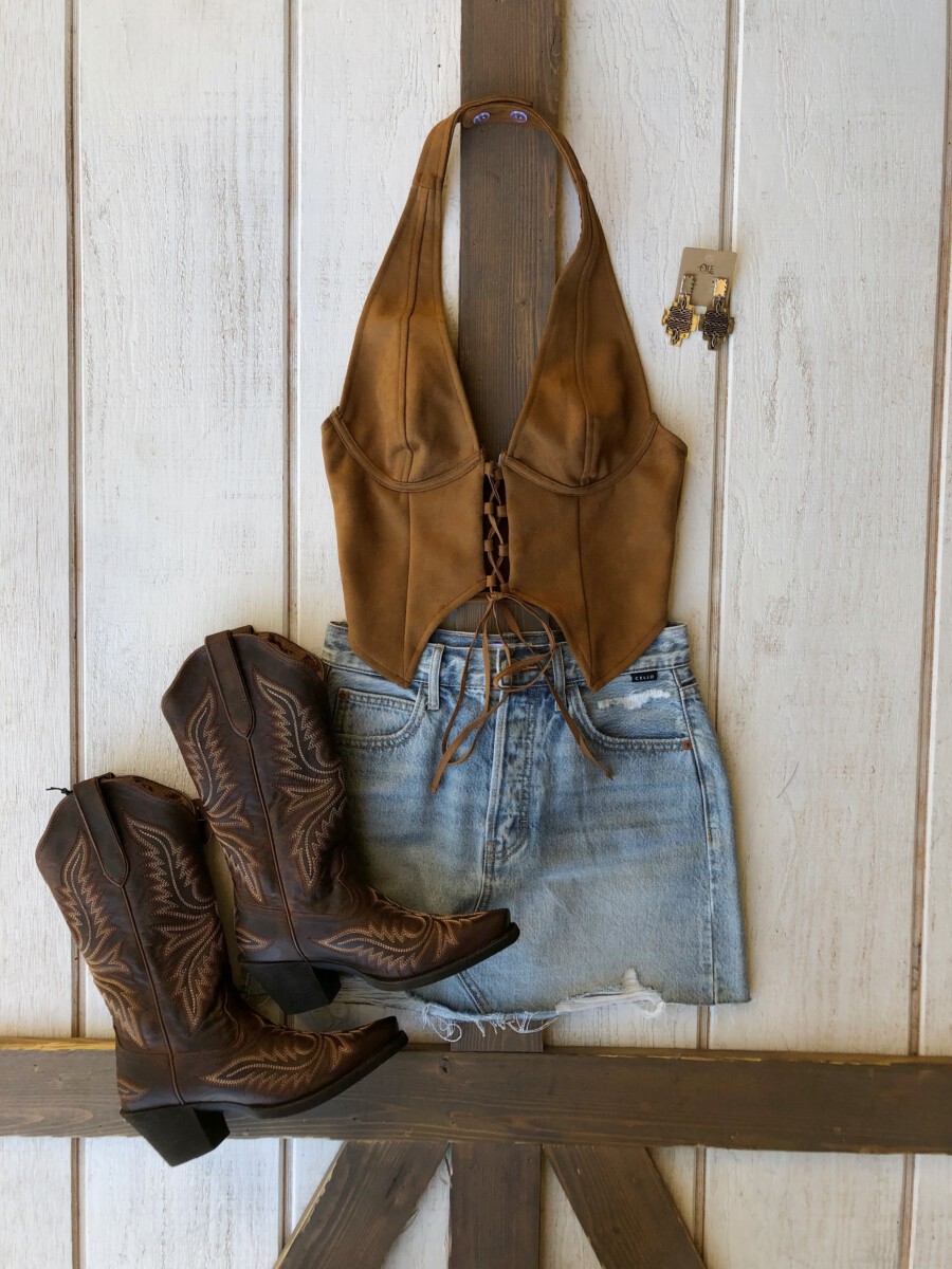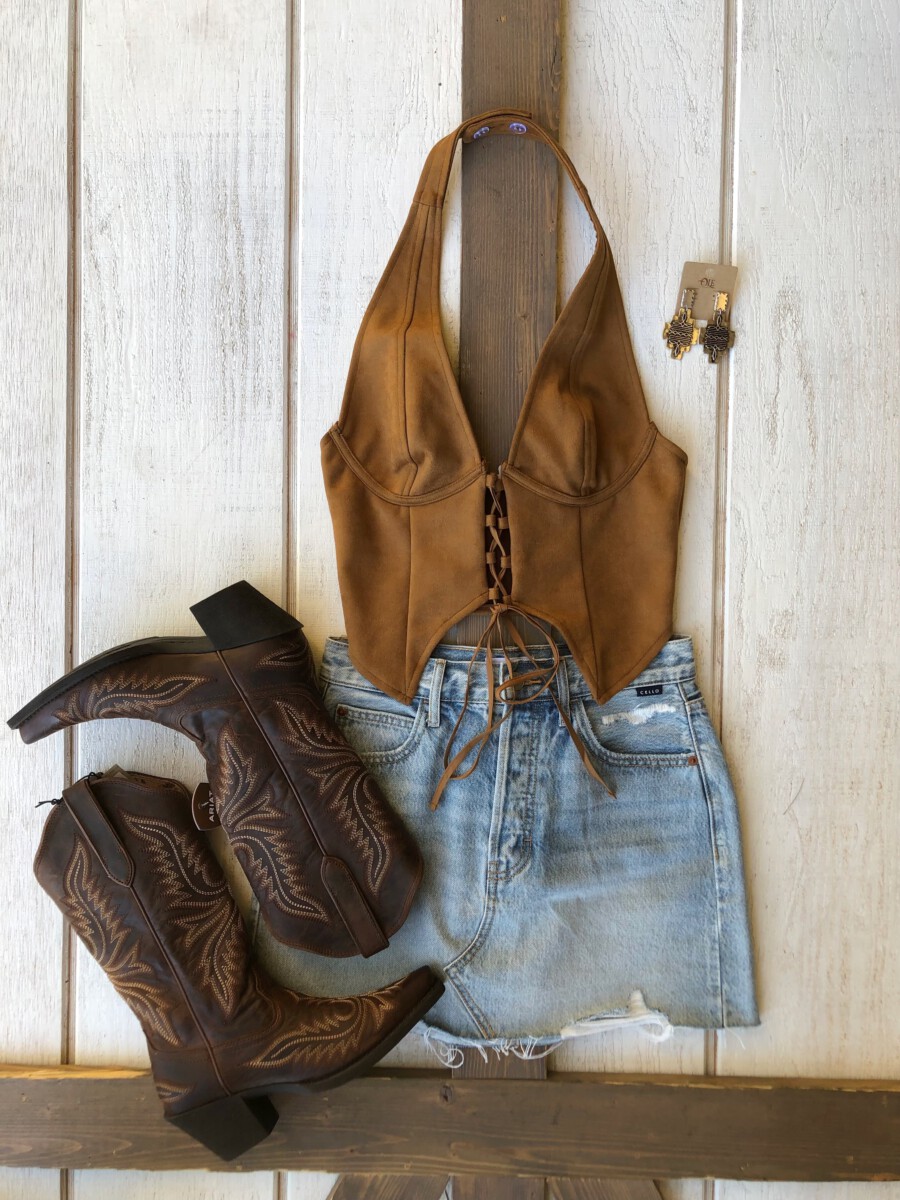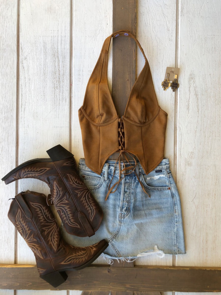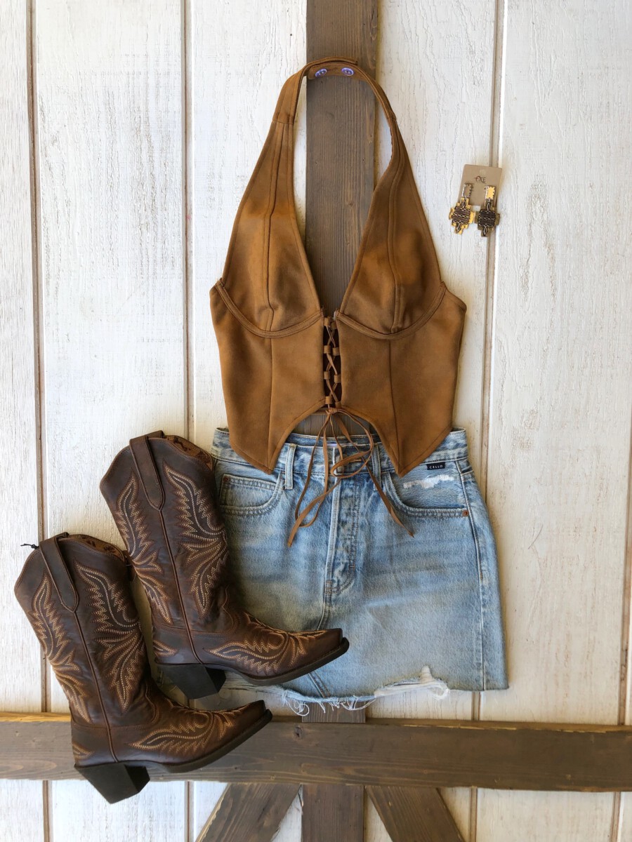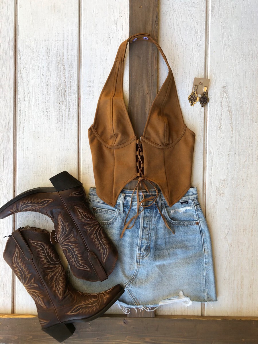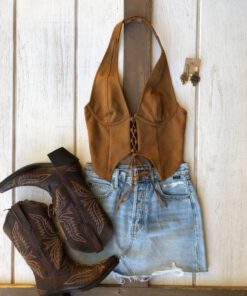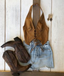 Be the first to review “” Traci ” Halter / Corset Suede Top ( Camel )” Cancel reply