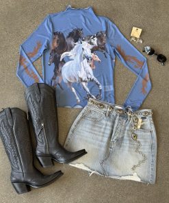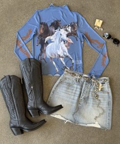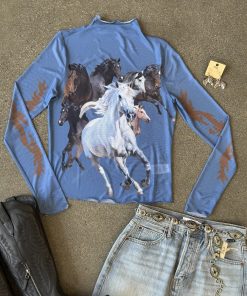 Be the first to review “” Wild Horses ” Mesh Long Sleeve Top ( Blue )” Cancel reply