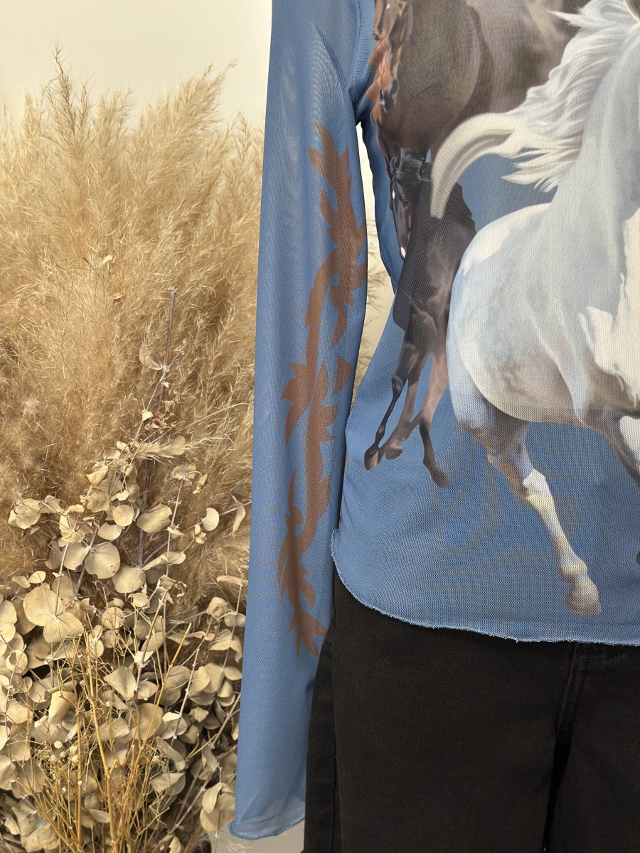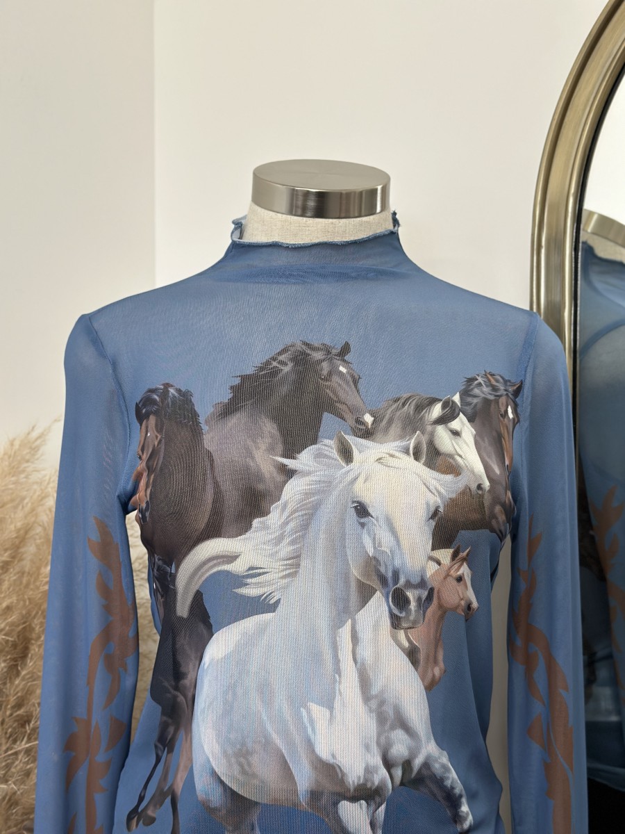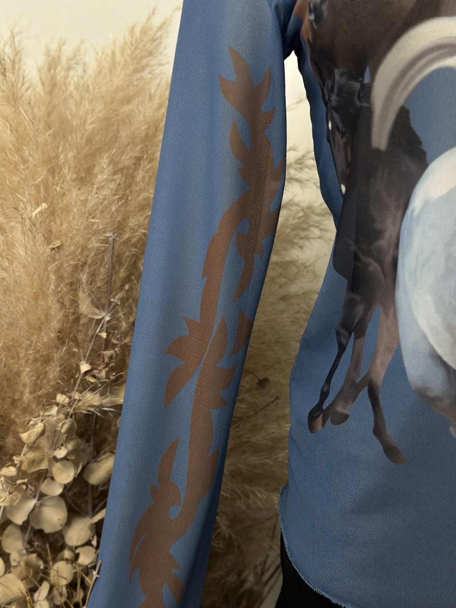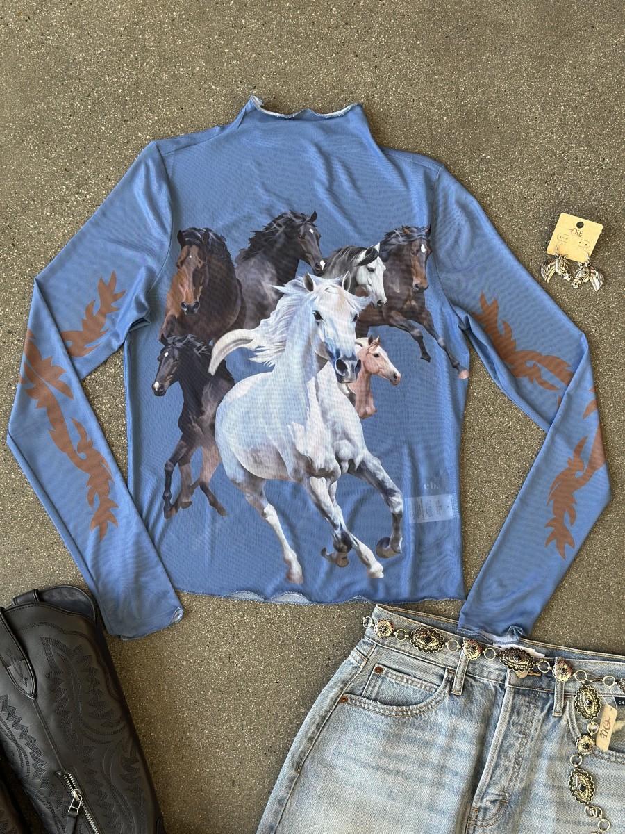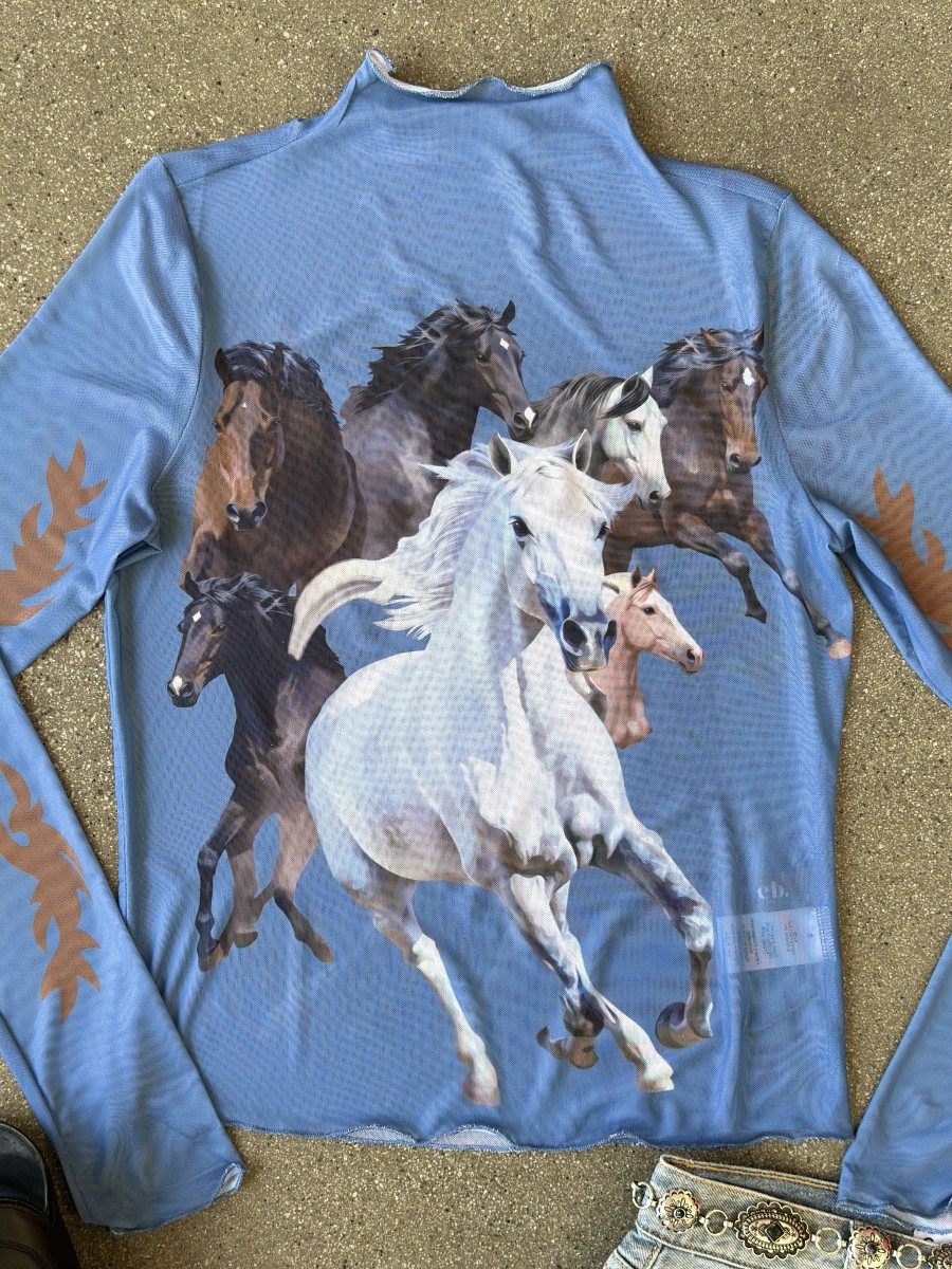 ” Wild Horses ” Mesh Long Sleeve Top ( Blue )
