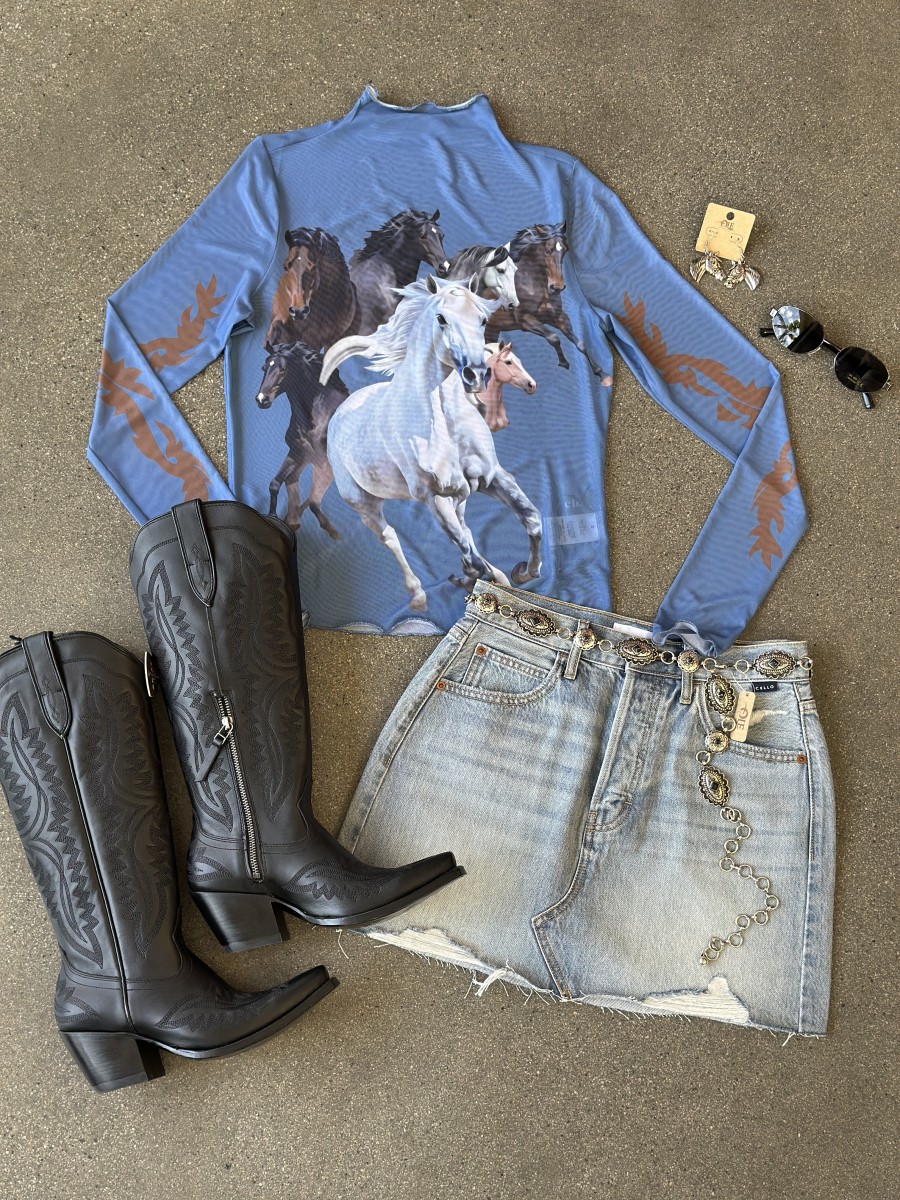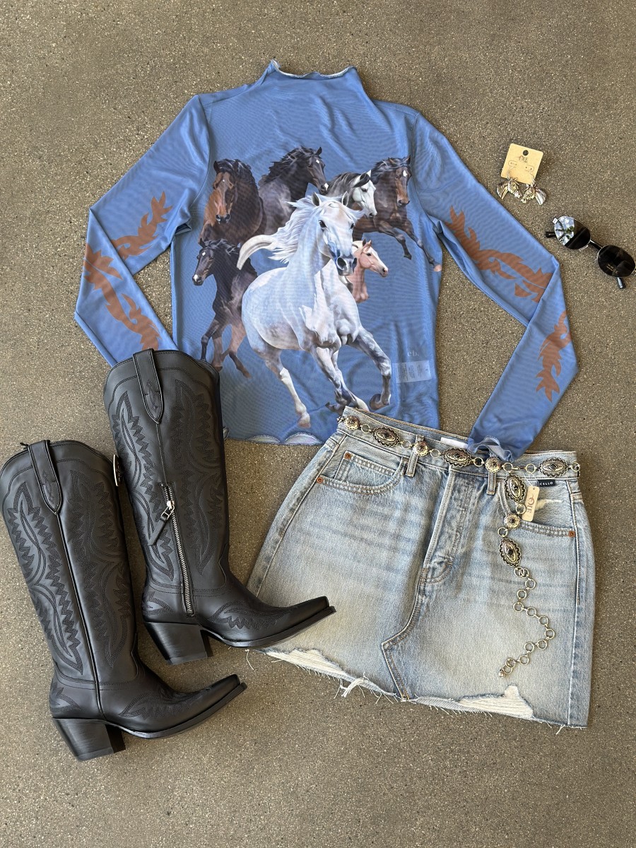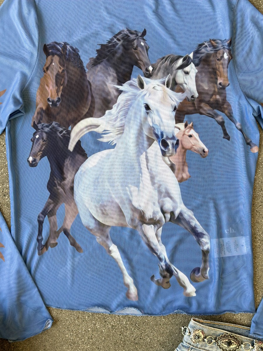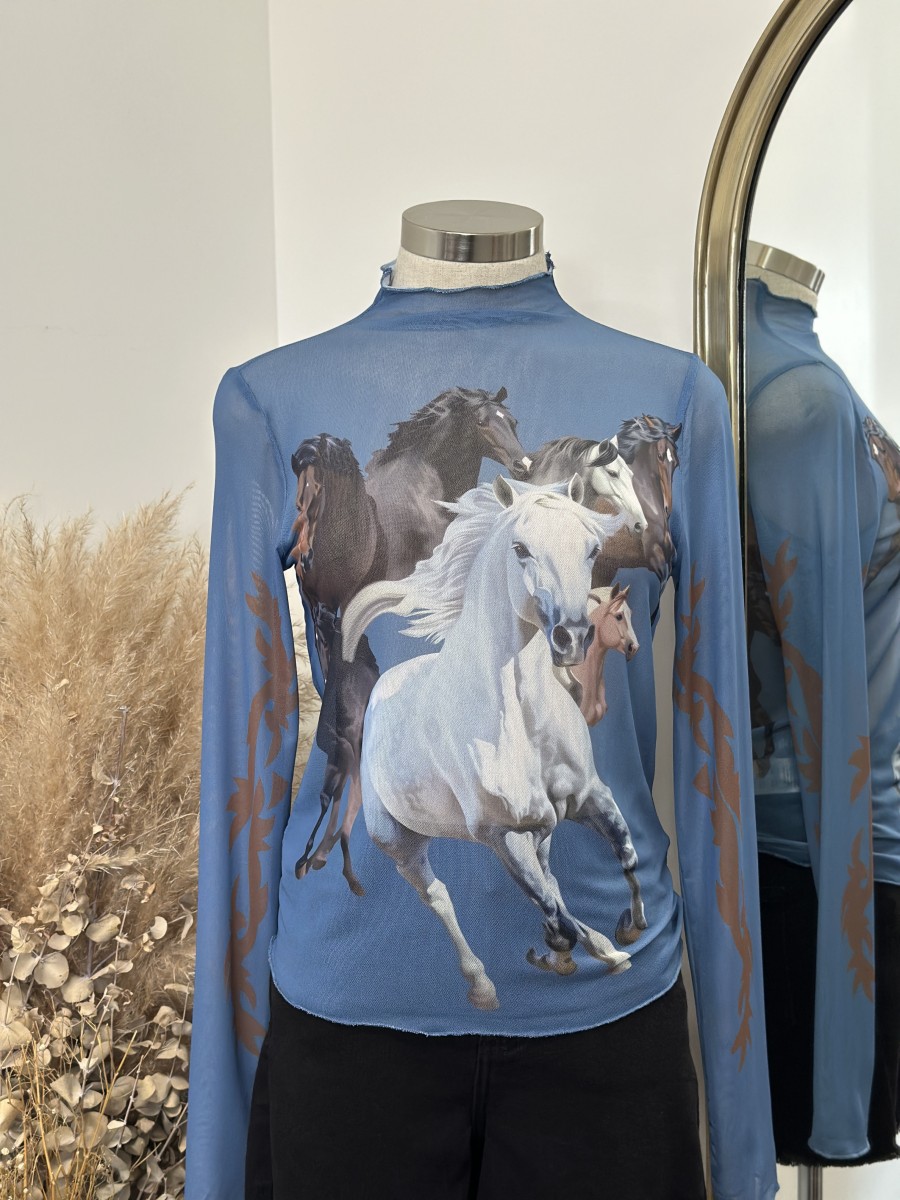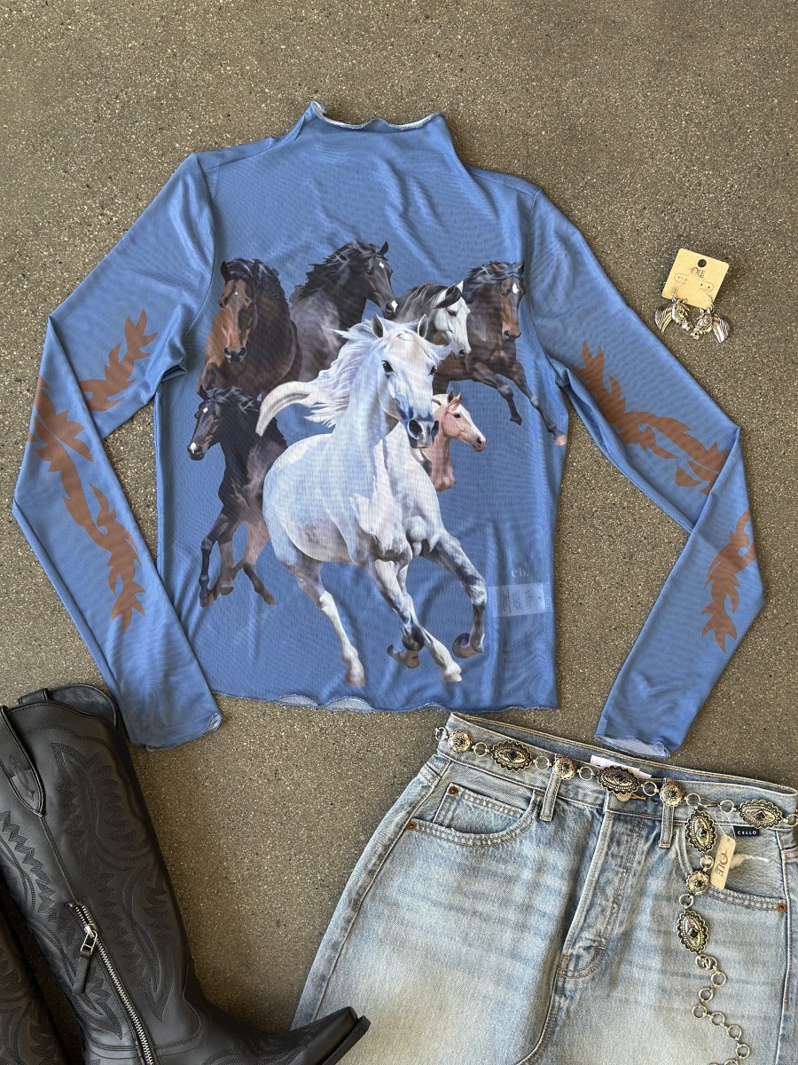 ” Wild Horses ” Mesh Long Sleeve Top ( Blue )