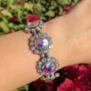 ” Yosmara ” Western Concho Stretch Bracelet ( Silver / Turquoise )