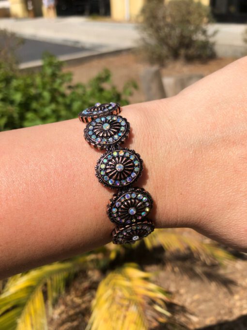 ” Alexa ” Western Concho Stretch Bracelet ( Copper / White )