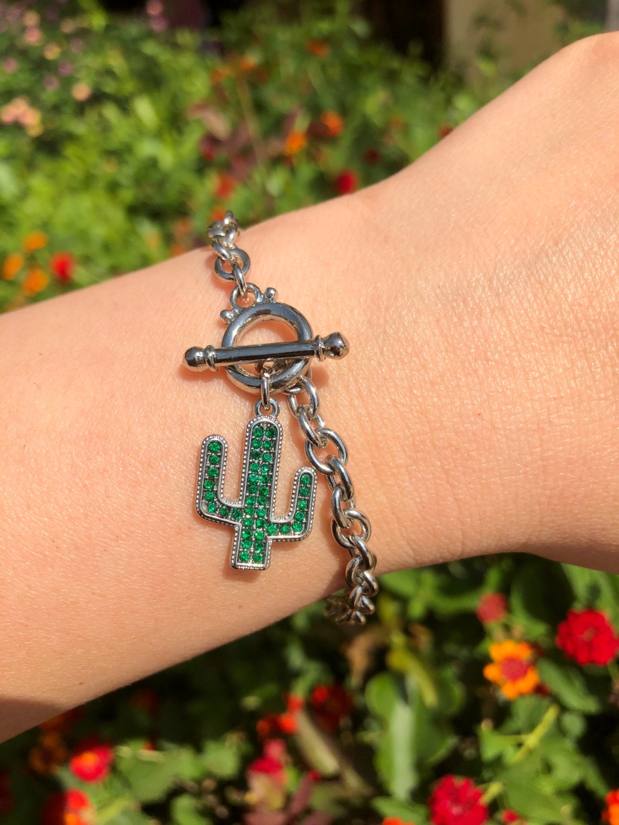” Harper ” Cactus Toggle Closure Bracelet ( Silver / Green )