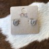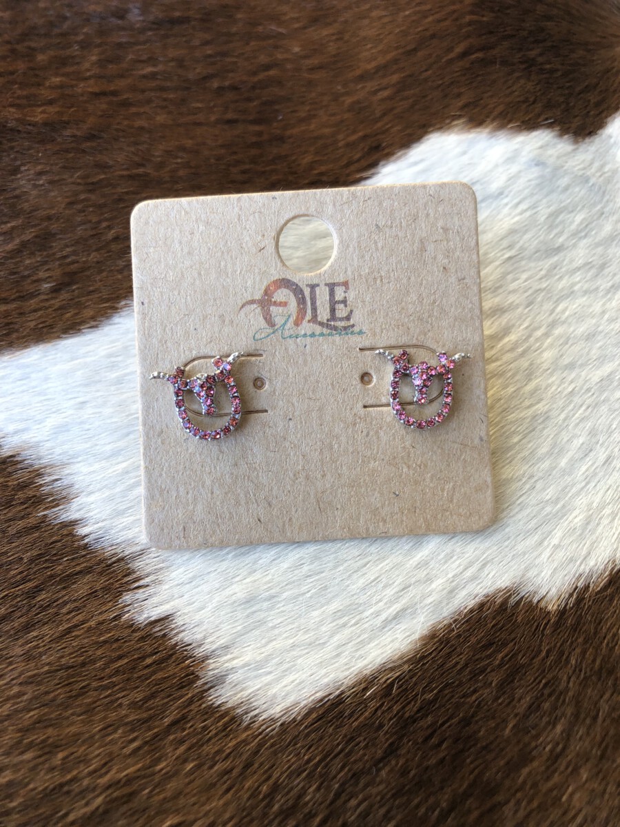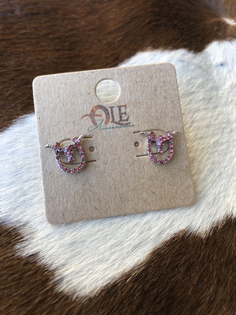 ” Adler ” Small Rhinestone Longhorn On a Horseshoe Earrings ( Pink )