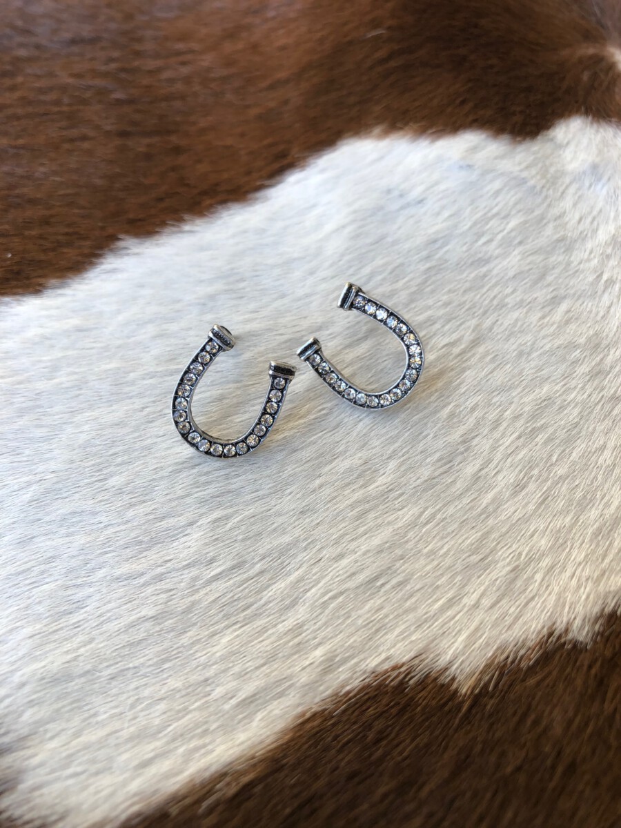 ” Aria ” Western Horseshoe Earrings ( Silver / Clear )