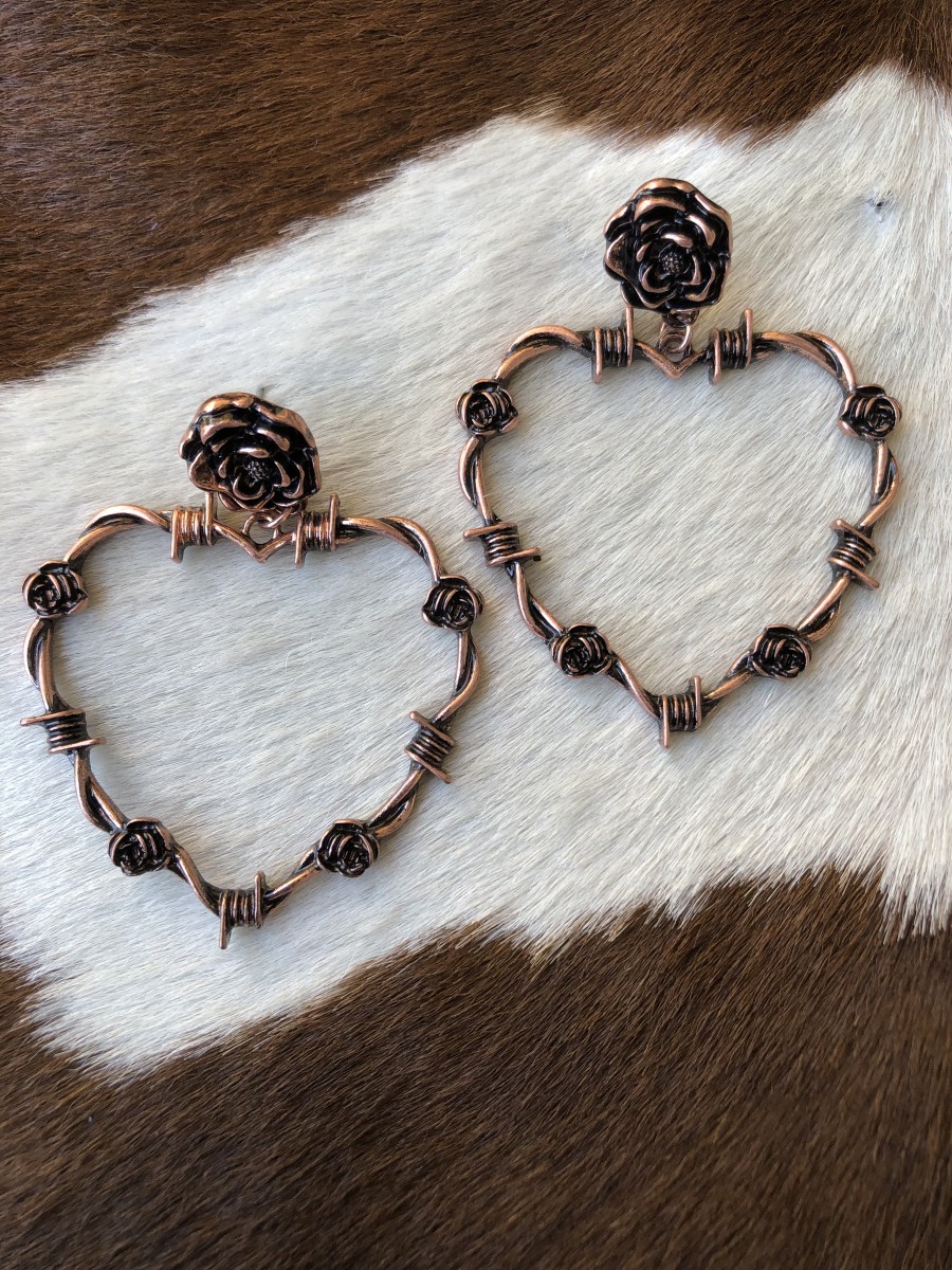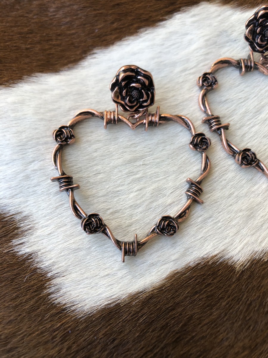 ” Aspen ” Barbed Heart & Rose Earrings ( Copper )