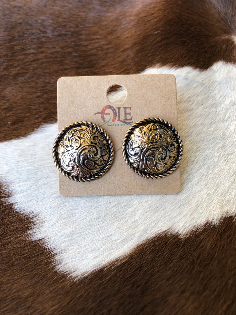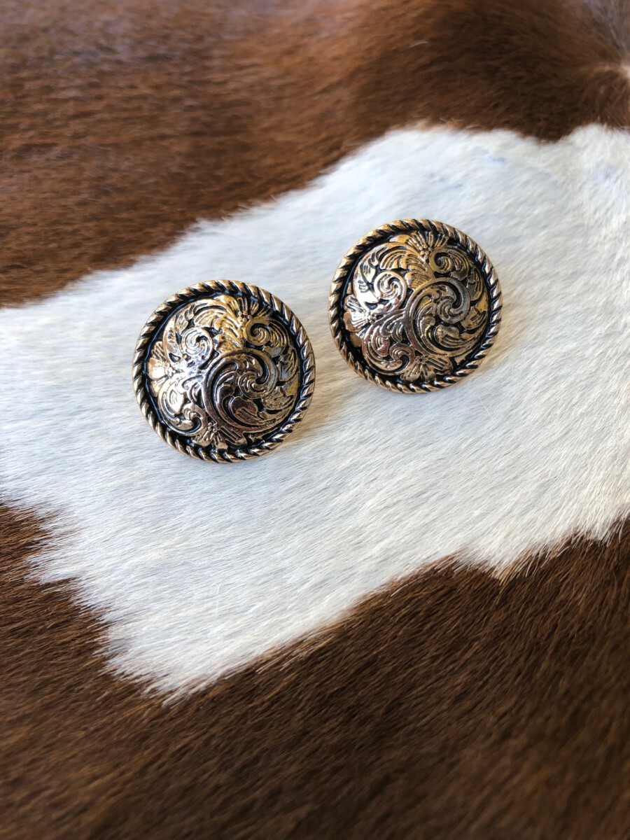 ” Ava ” Rope Edge Concho Earrings ( Gold )