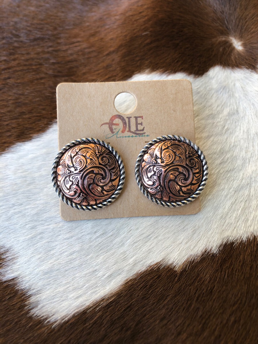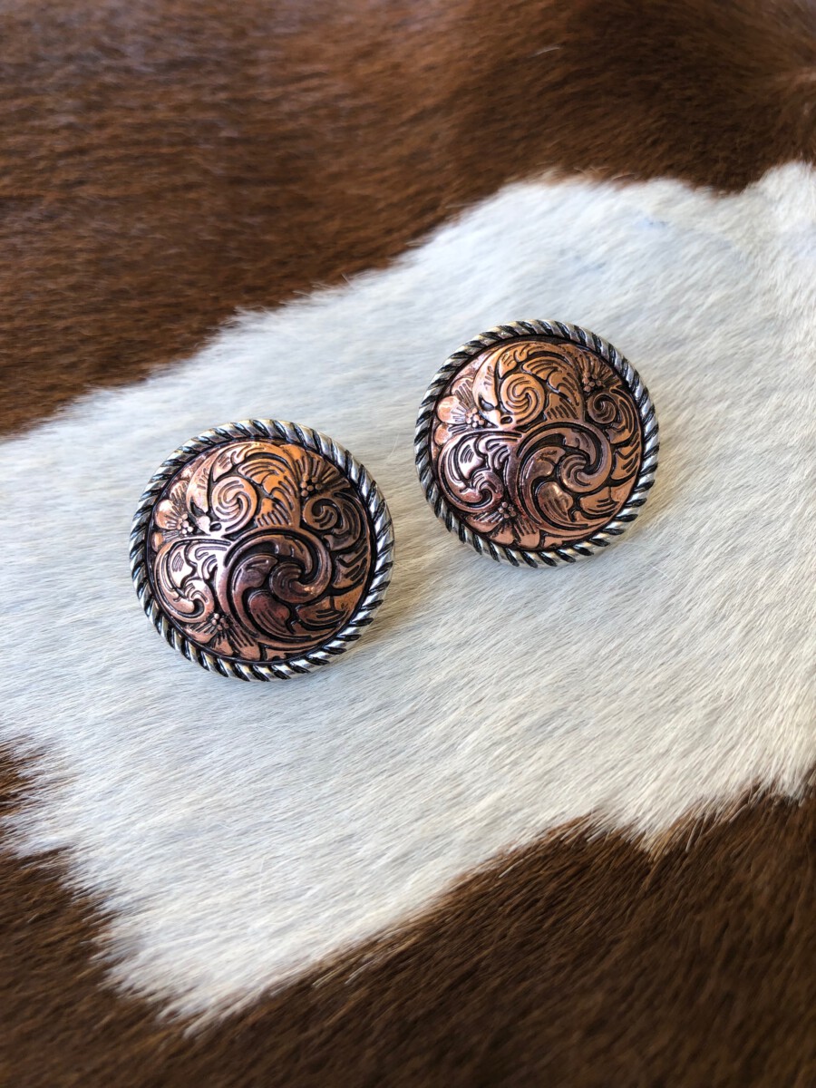 ” Ava ” Rope Edge Concho Earrings ( Silver / Copper )