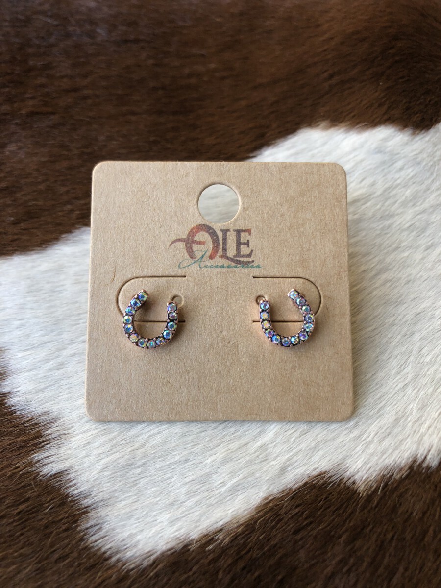 ” Cowgirl ” Horseshoe Earrings ( Copper / AB )