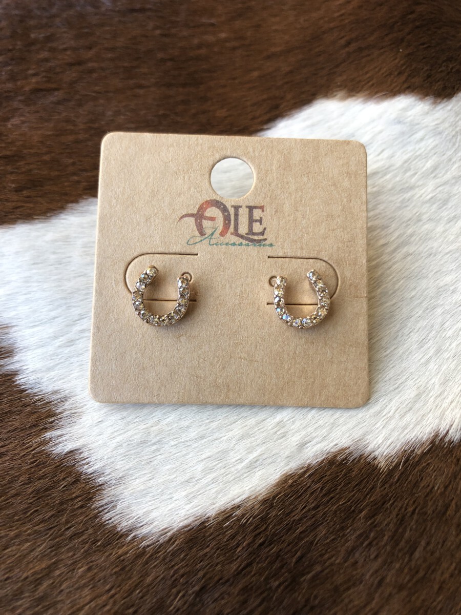 ” Cowgirl ” Horseshoe Earrings ( Gold / Champagne )