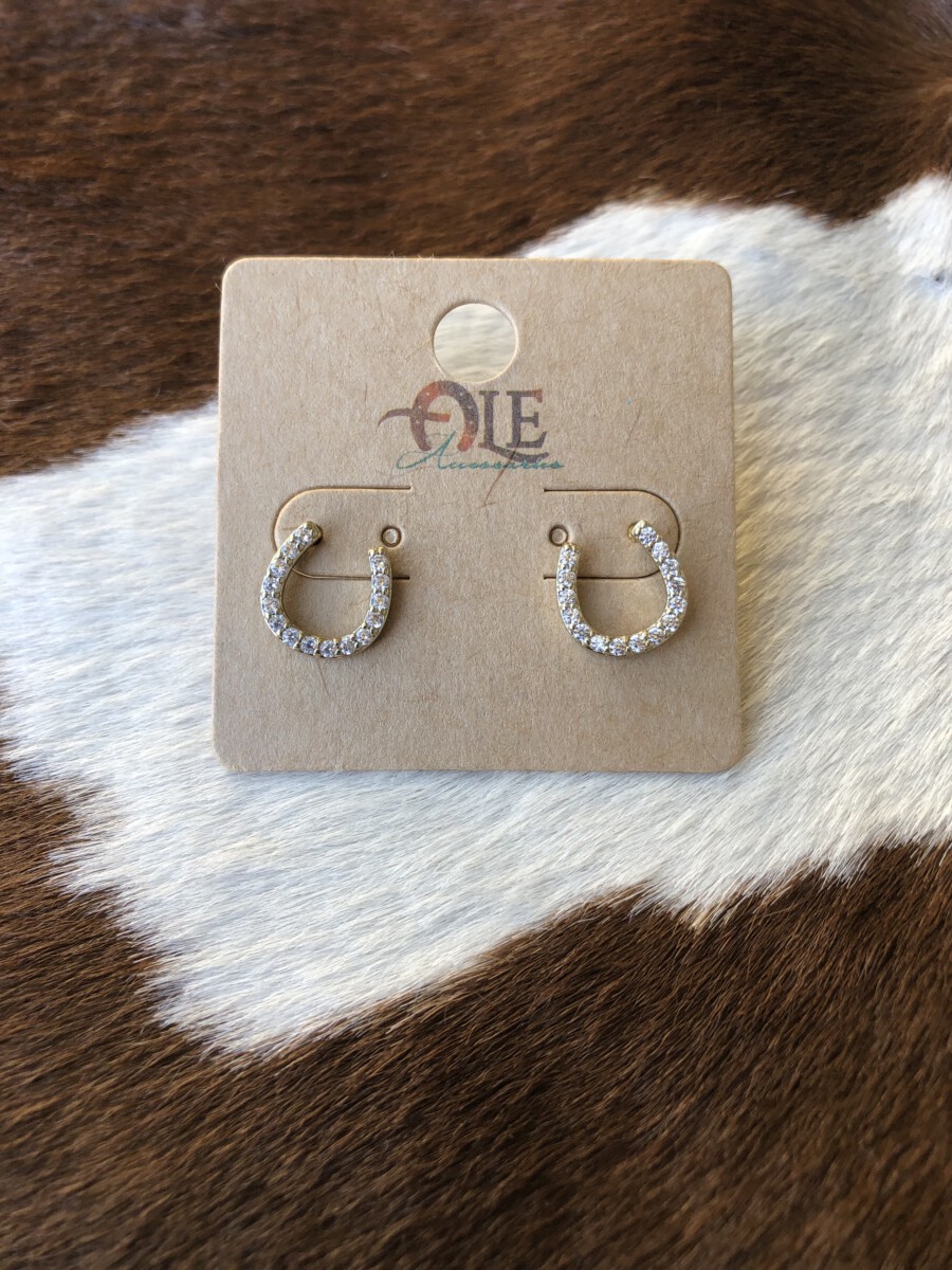 ” Delilah ” Rhinestone Horseshoe Stud Earrings ( Gold / Clear )