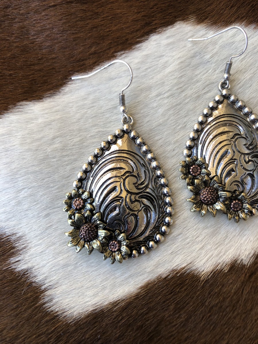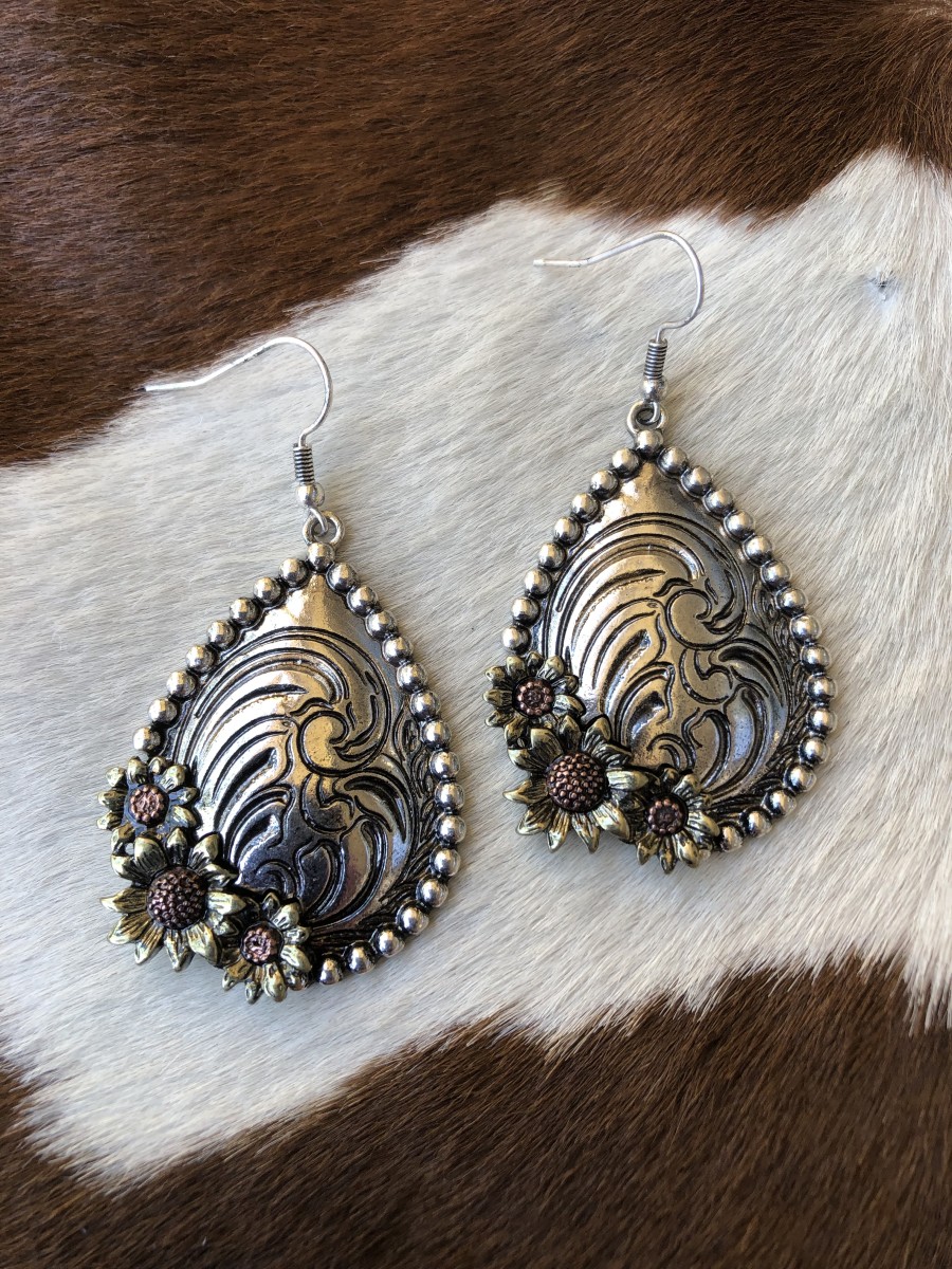 ” Allegra ” Western Floral Concho Earrings ( Multi Color )