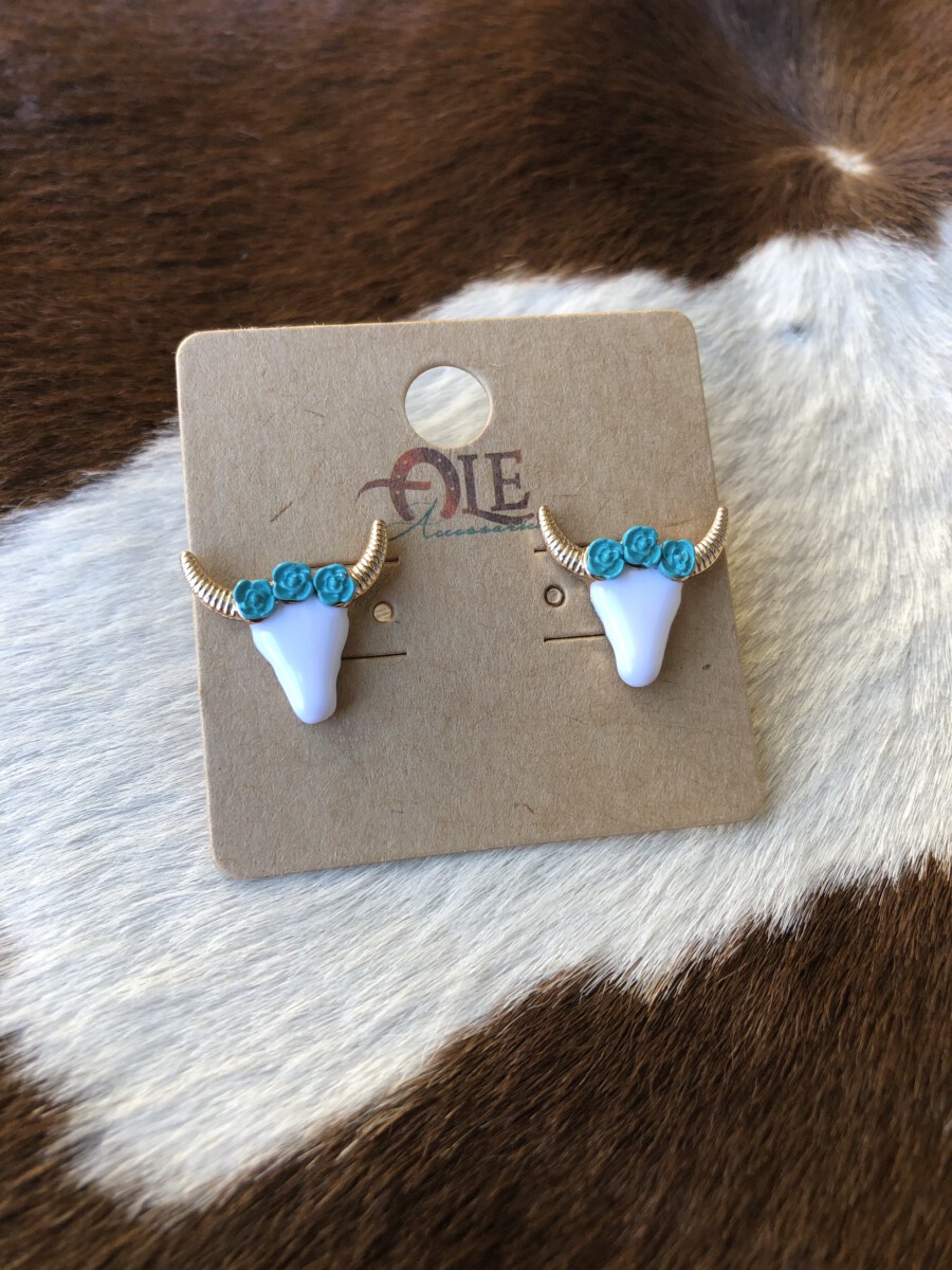 Be the first to review “Floral Steer Head Stud Earrings ( Turquoise )” Cancel reply