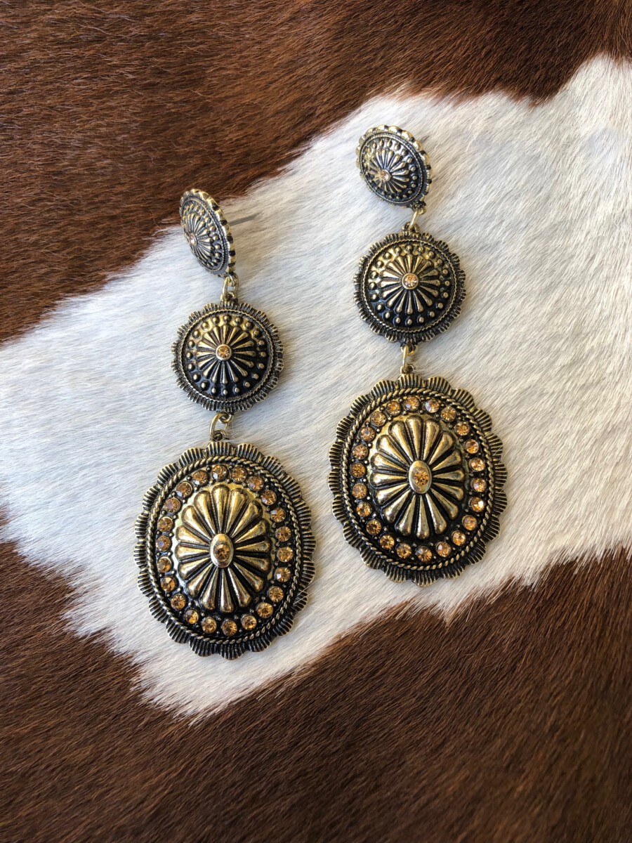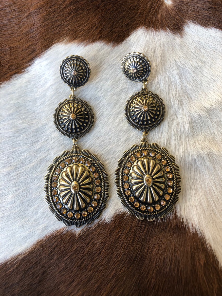 ” Girly ” Rhinestone Triple Concho Earrings ( Gold / Champagne )
