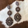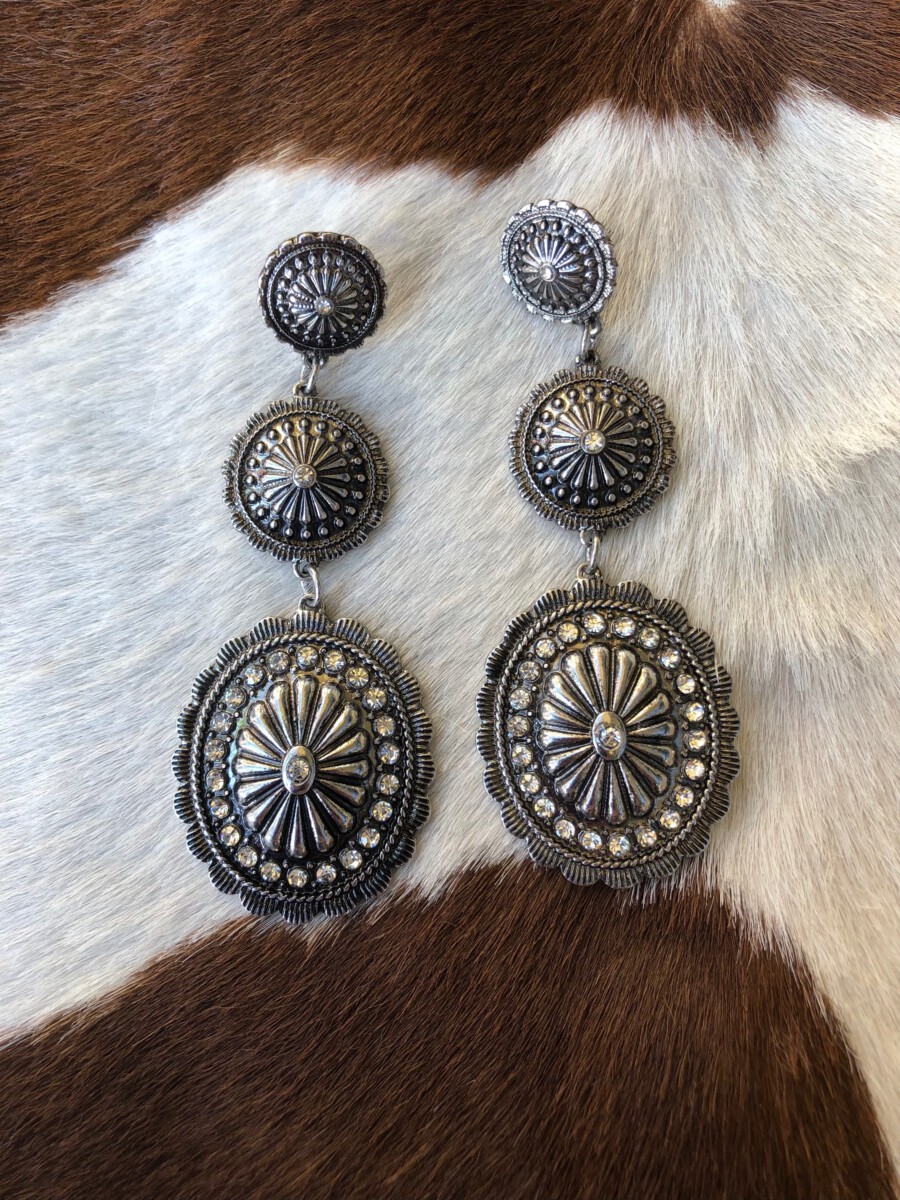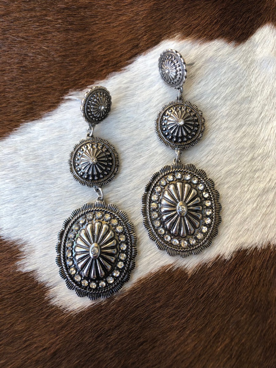 ” Girly ” Rhinestone Triple Concho Earrings ( Silver / Clear )