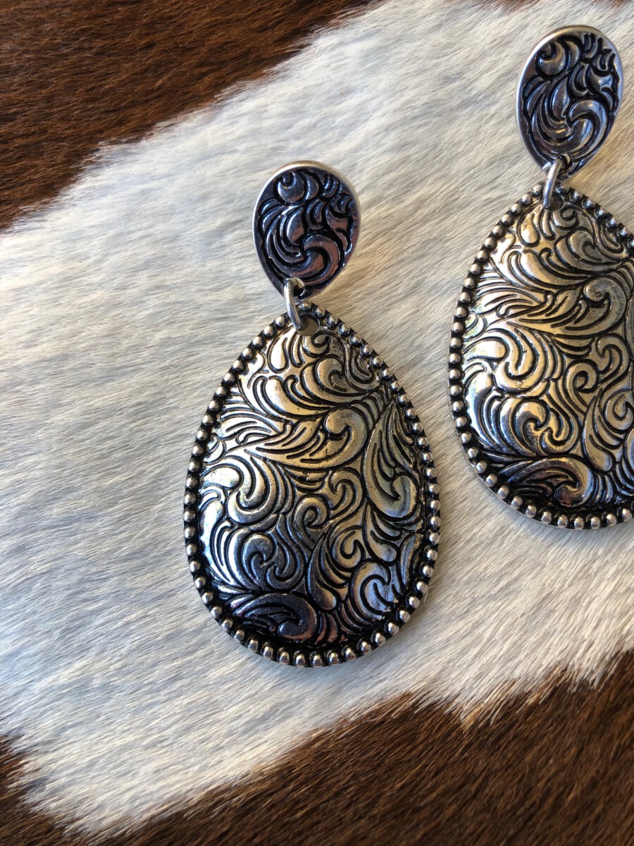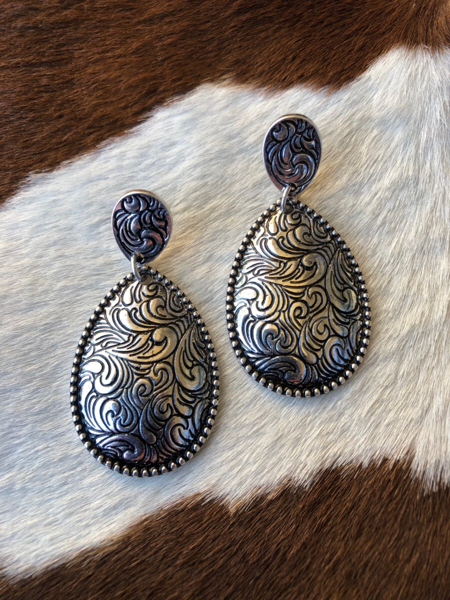” Kristina ” Western Teardrop Earrings ( Silver )