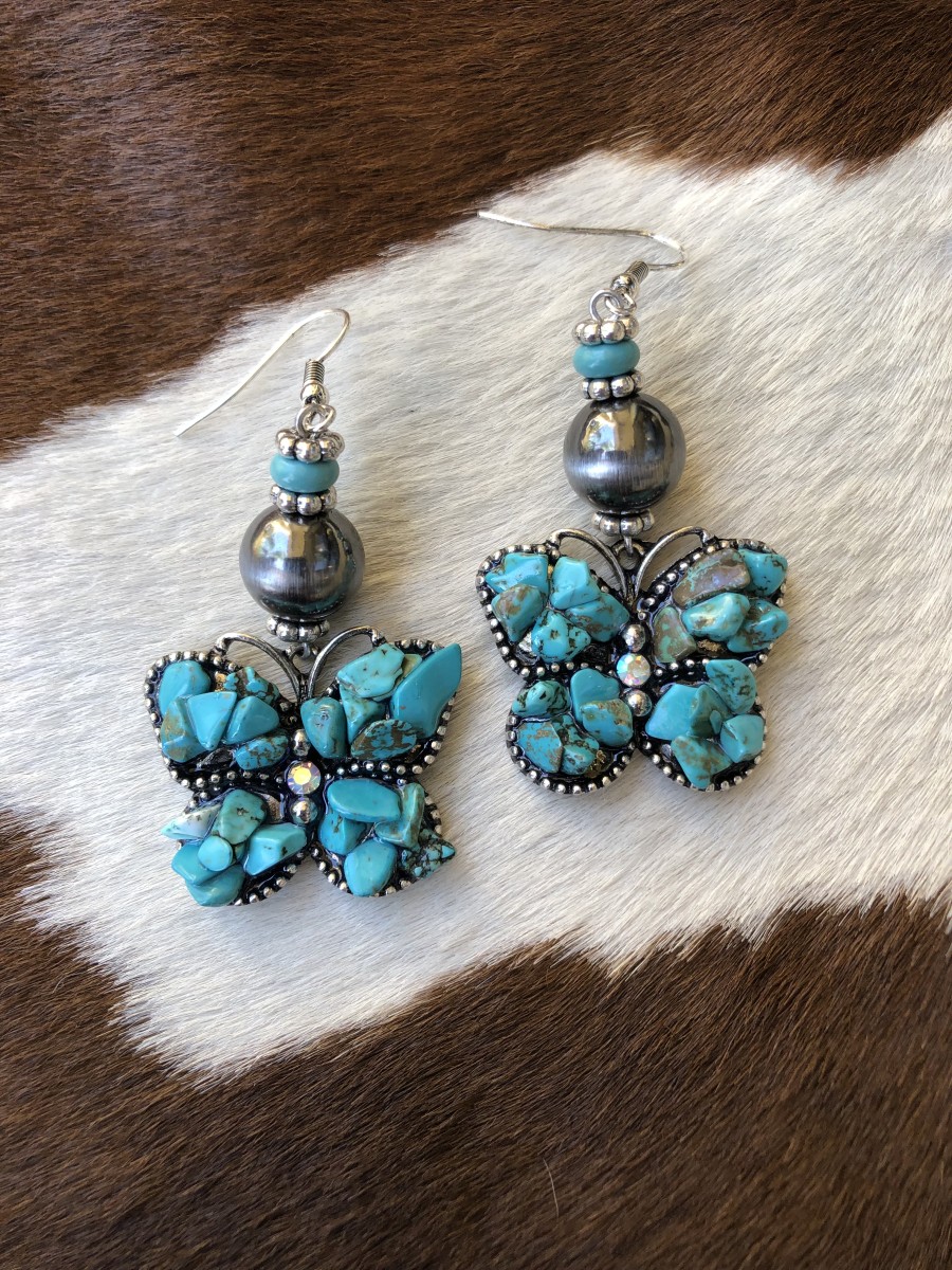 ” Lizette ” Butterfly Dangle Earrings ( Turquoise )