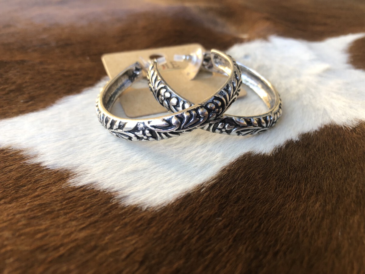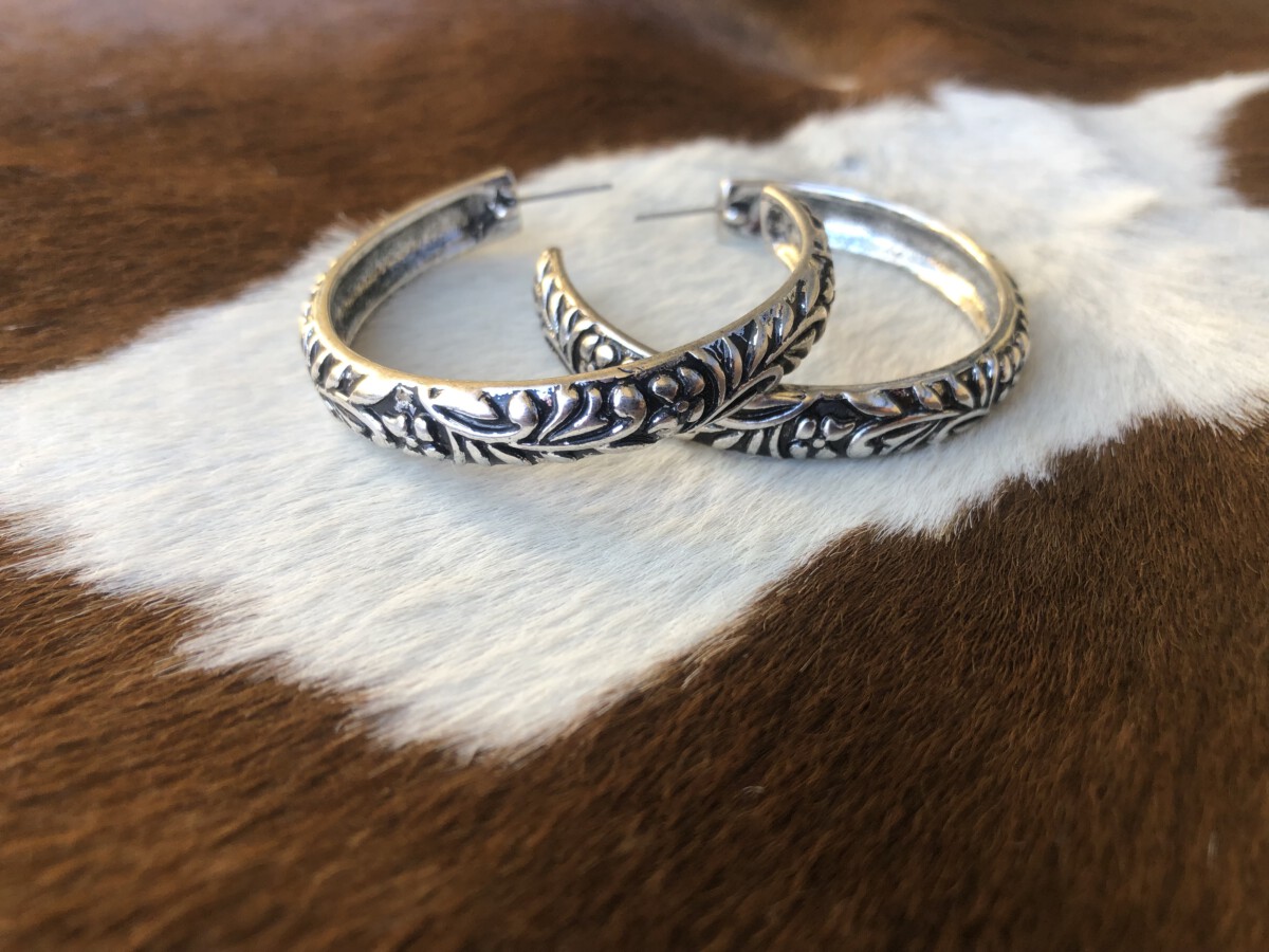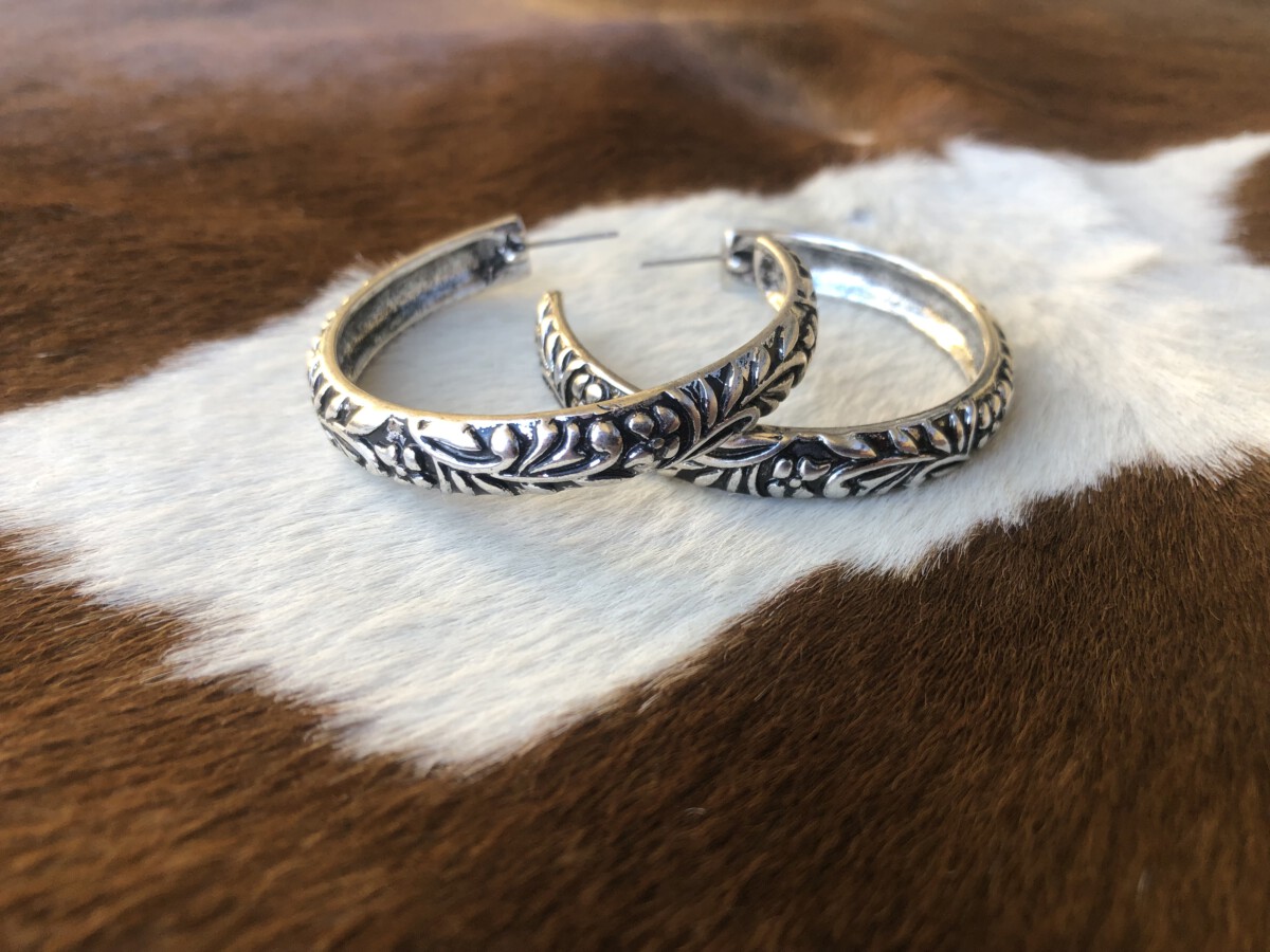 ” Minerva ” Western Hoop Earrings ( Silver )