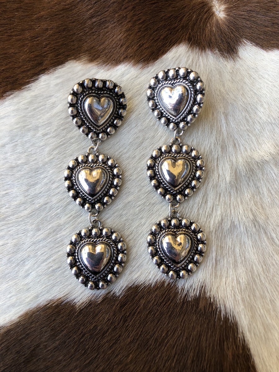” Naomi ” Triple Heart Earrings ( Silver )