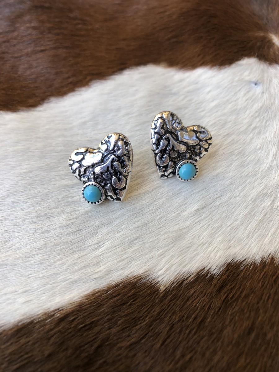 ” Parker ” Heart & Horse Stud Earrings ( Turquoise )