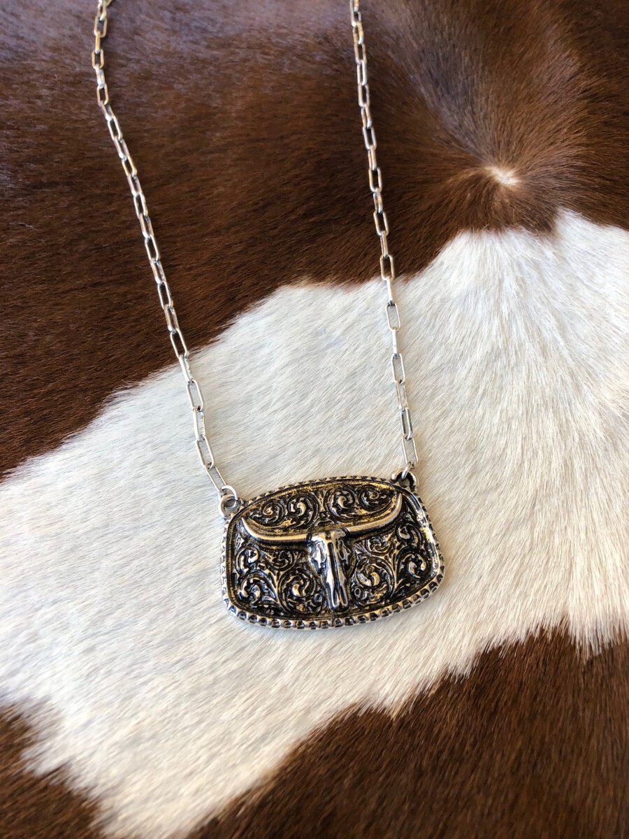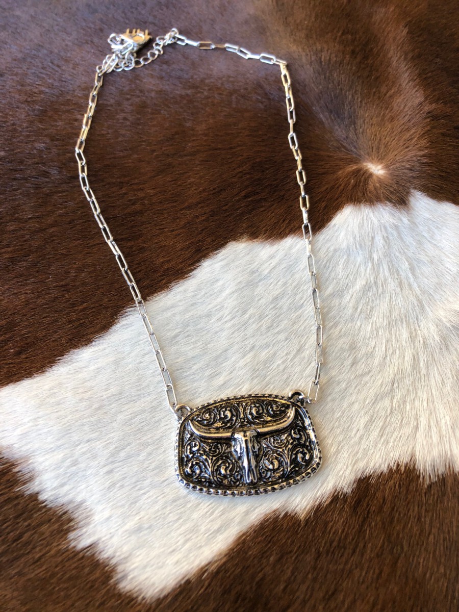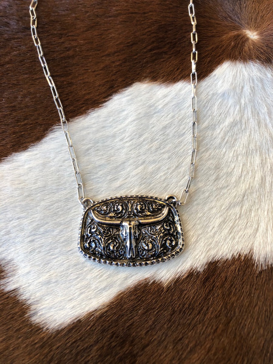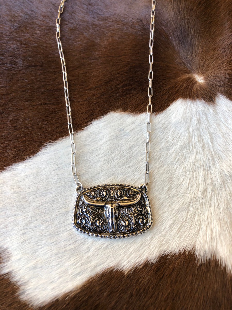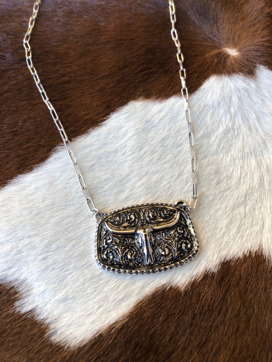 ” Bonnie ” Longhorn Pendant Necklace ( Silver )