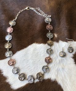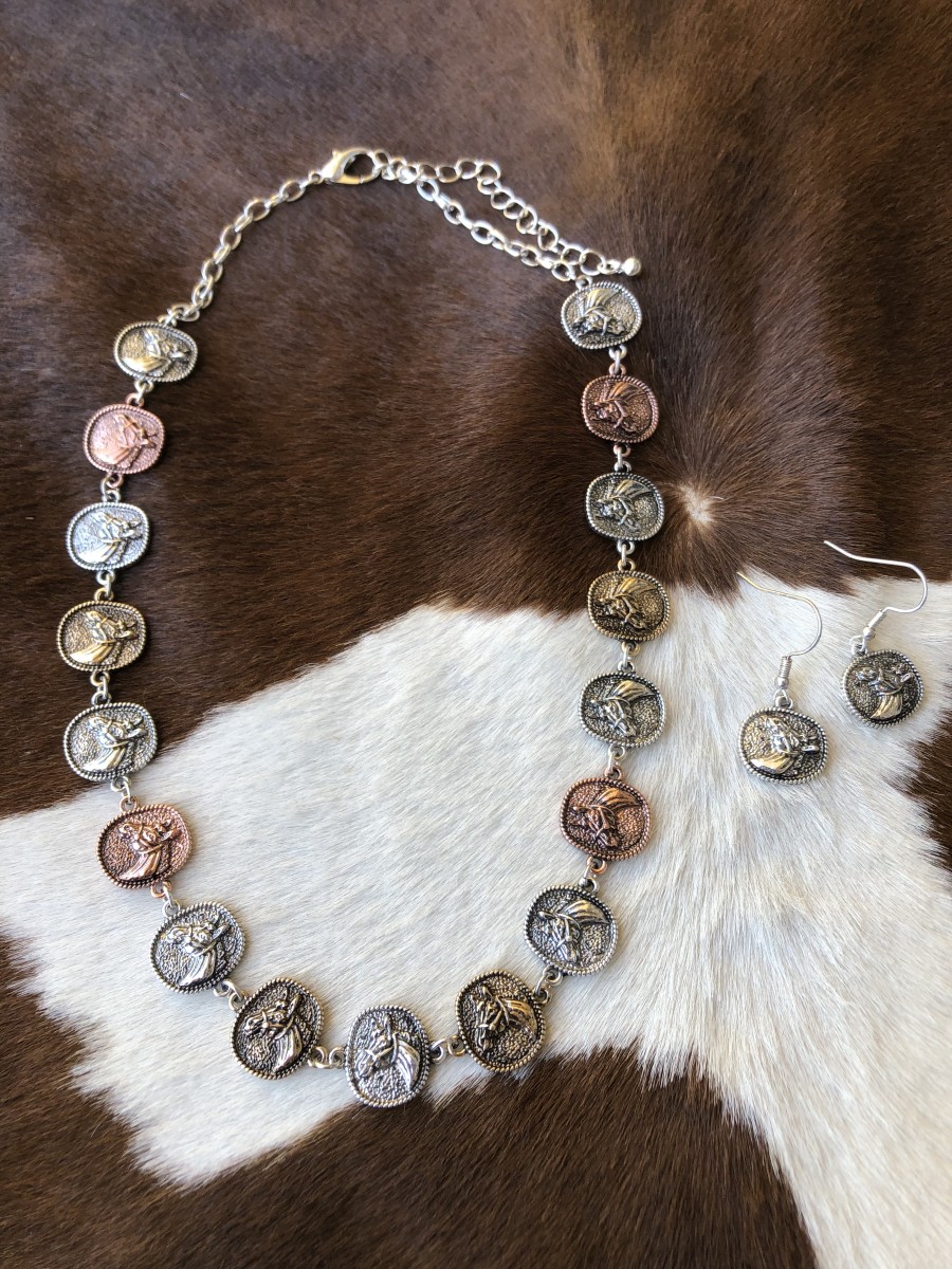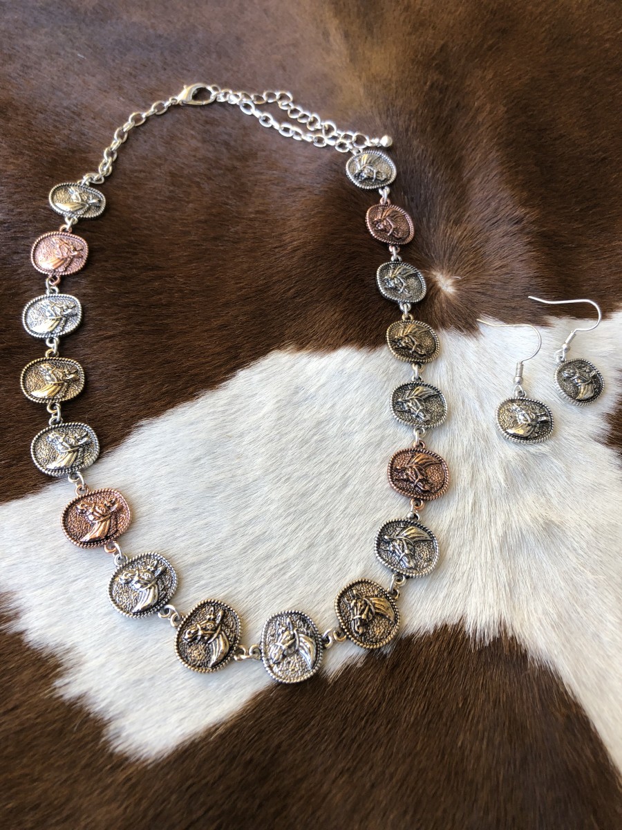 ” Gunner Horse ” Hammered Necklace Set ( Tri Tone )