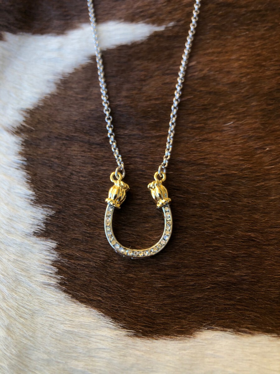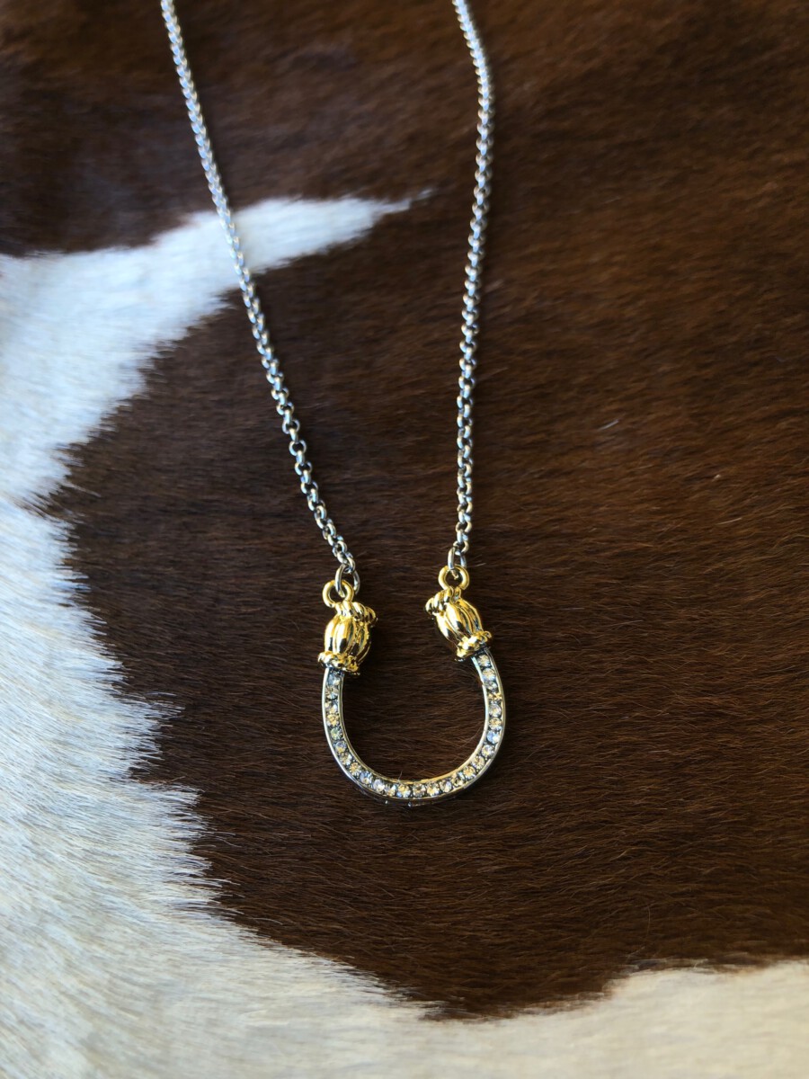 ” Moriah ” Western Rhinestone Horseshoe Necklace ( Two Tone )