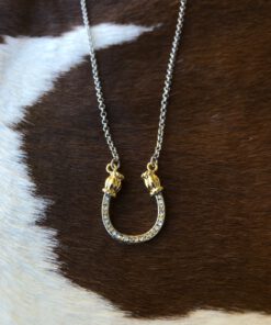 Be the first to review “” Moriah ” Western Rhinestone Horseshoe Necklace ( Two Tone )” Cancel reply