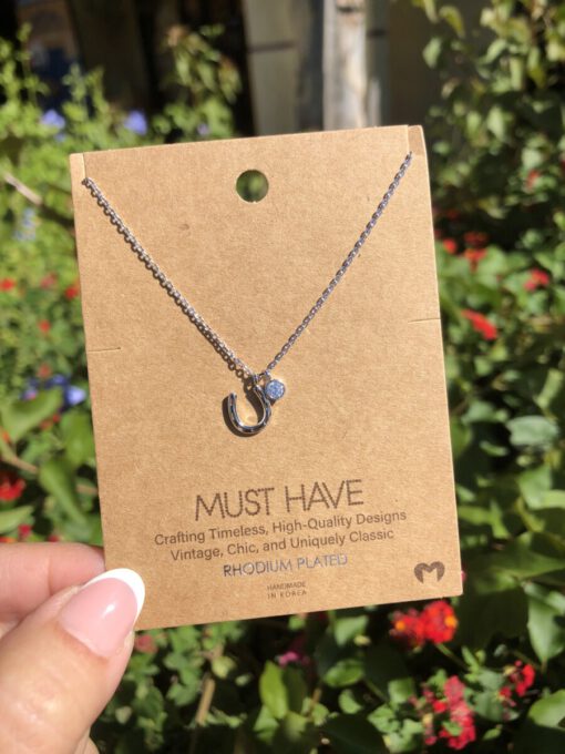 Be the first to review “MUST HAVE – ” Cowgirl Love ” Rhodium Dipped Horseshoe Necklace” Cancel reply
