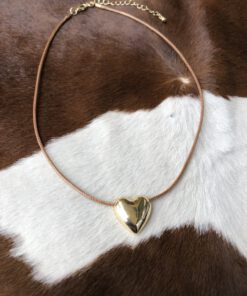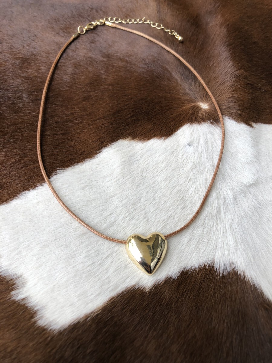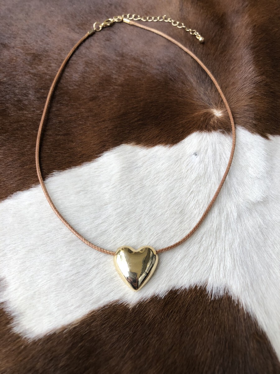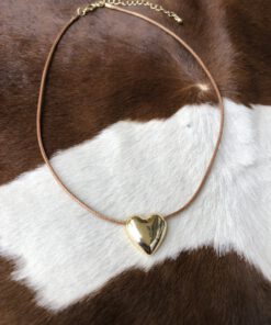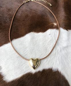 Be the first to review “Small Heart Pendant Cord Necklace ( Brown / Gold )” Cancel reply