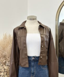 Be the first to review “” Chrishell ” Pu Faux Leather Cropped Jacket ( Brown )” Cancel reply