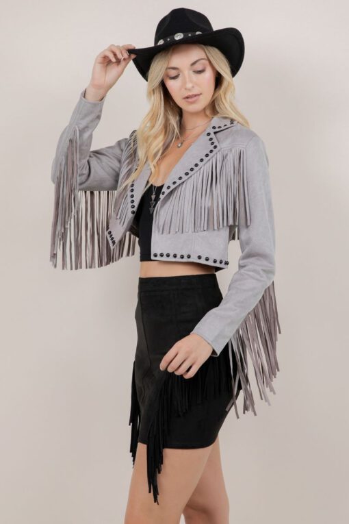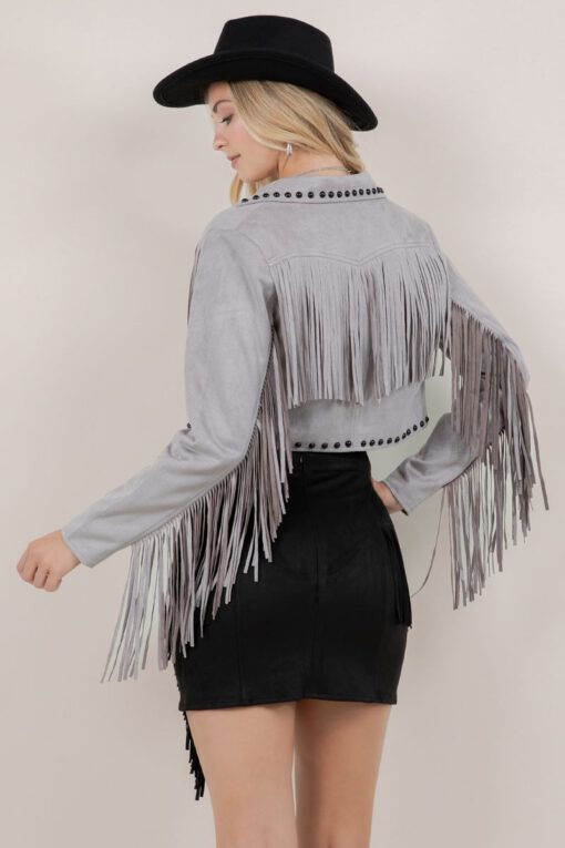 ” Gianna ” Fringe Studded Jacket ( Grey )