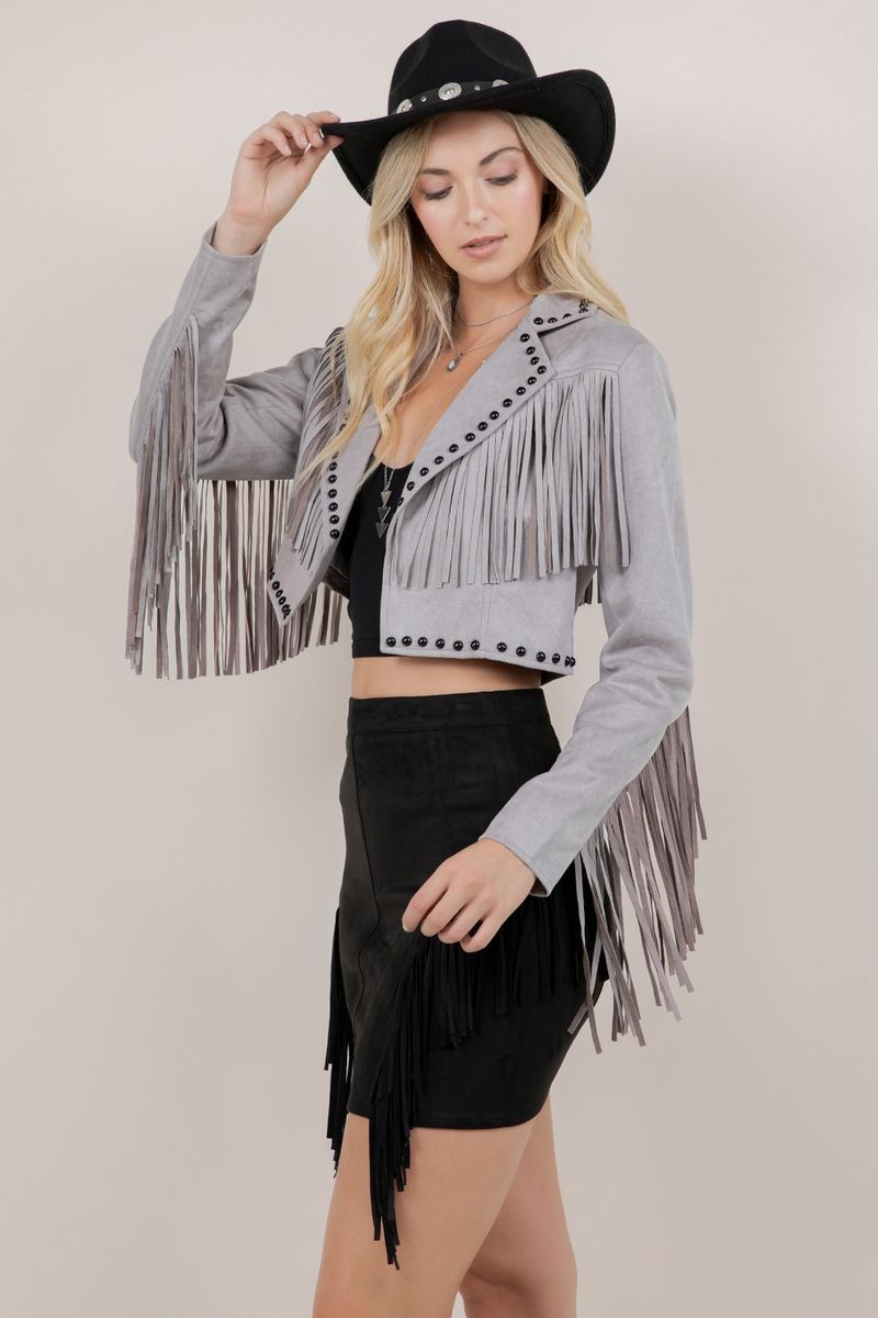 Be the first to review “” Gianna ” Fringe Studded Jacket ( Grey )” Cancel reply