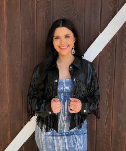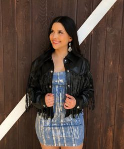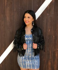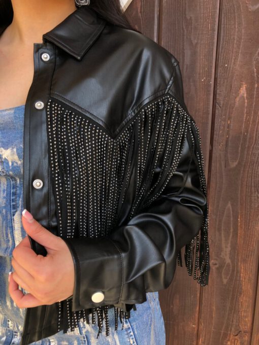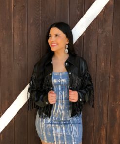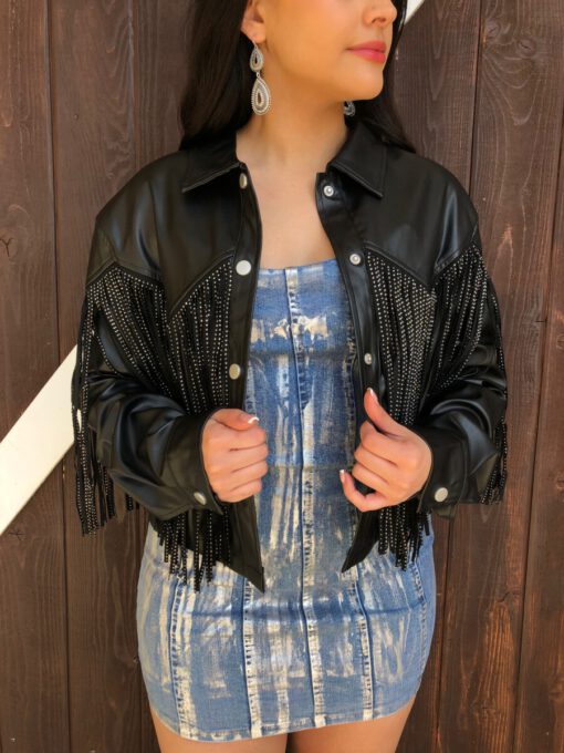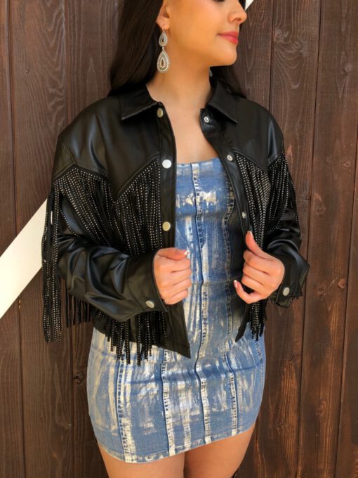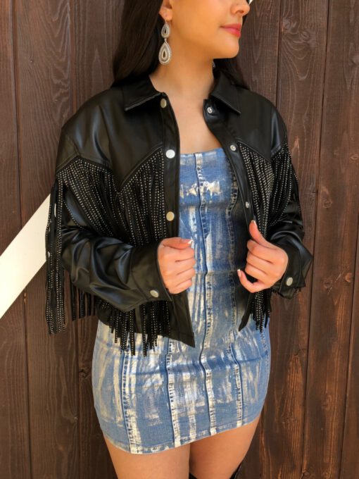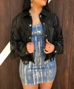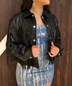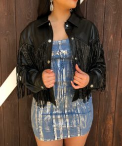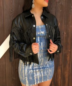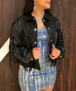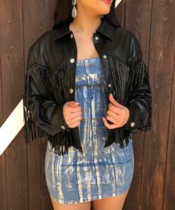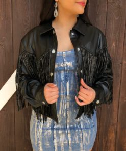 Be the first to review “” Jade ” Pu Faux Leather Fringe Jacket ( Black )” Cancel reply