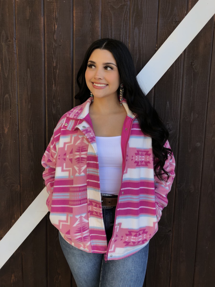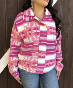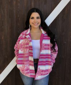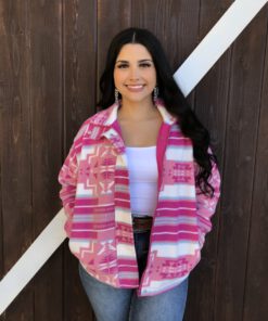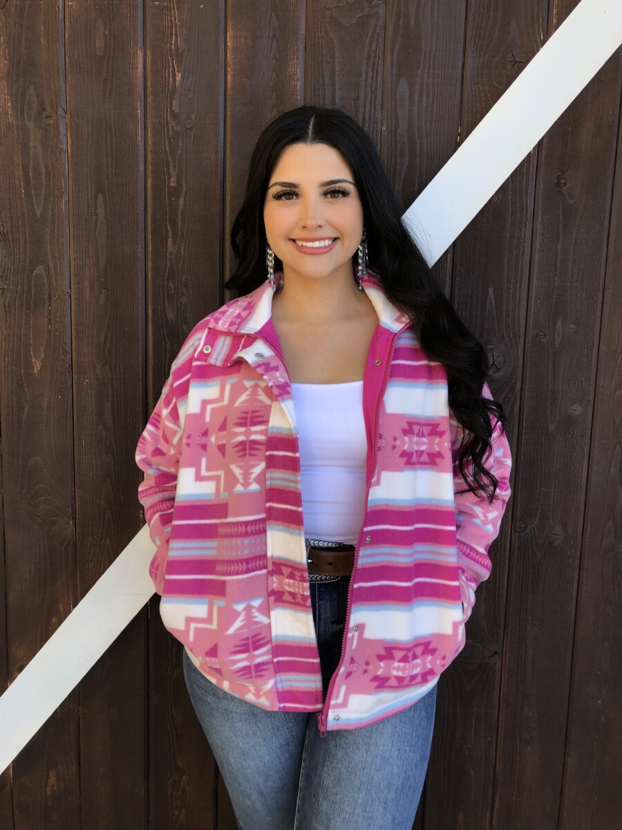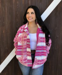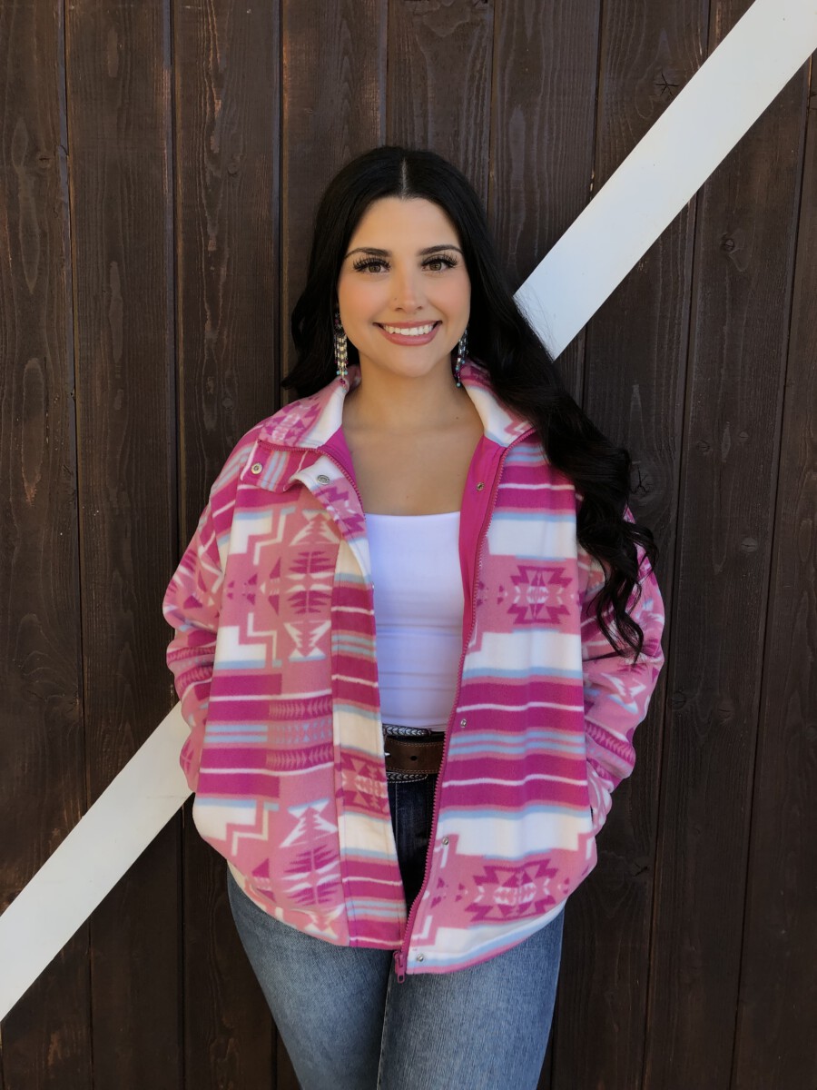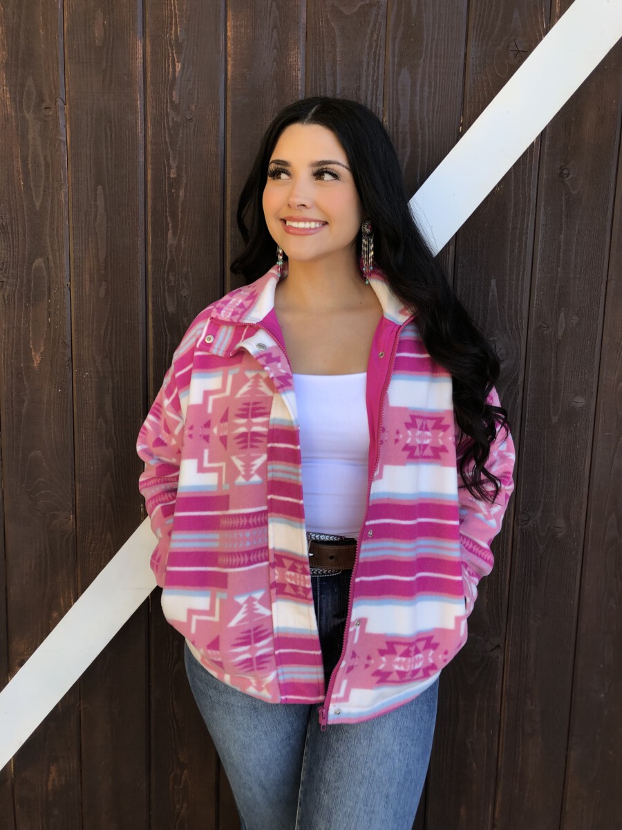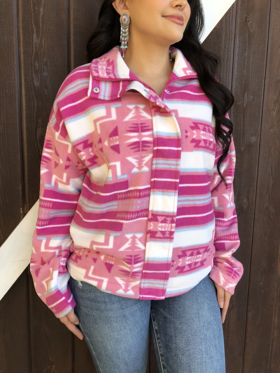 ” Jolina “Aztec Soft Cozy Zip Up Jacket ( Pink )