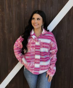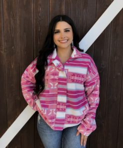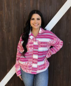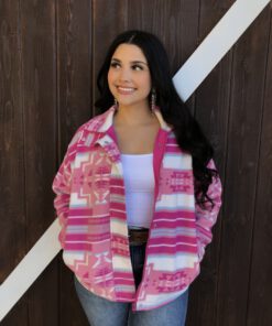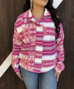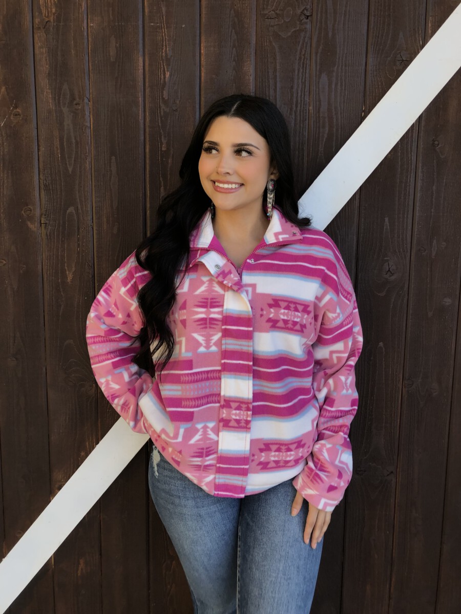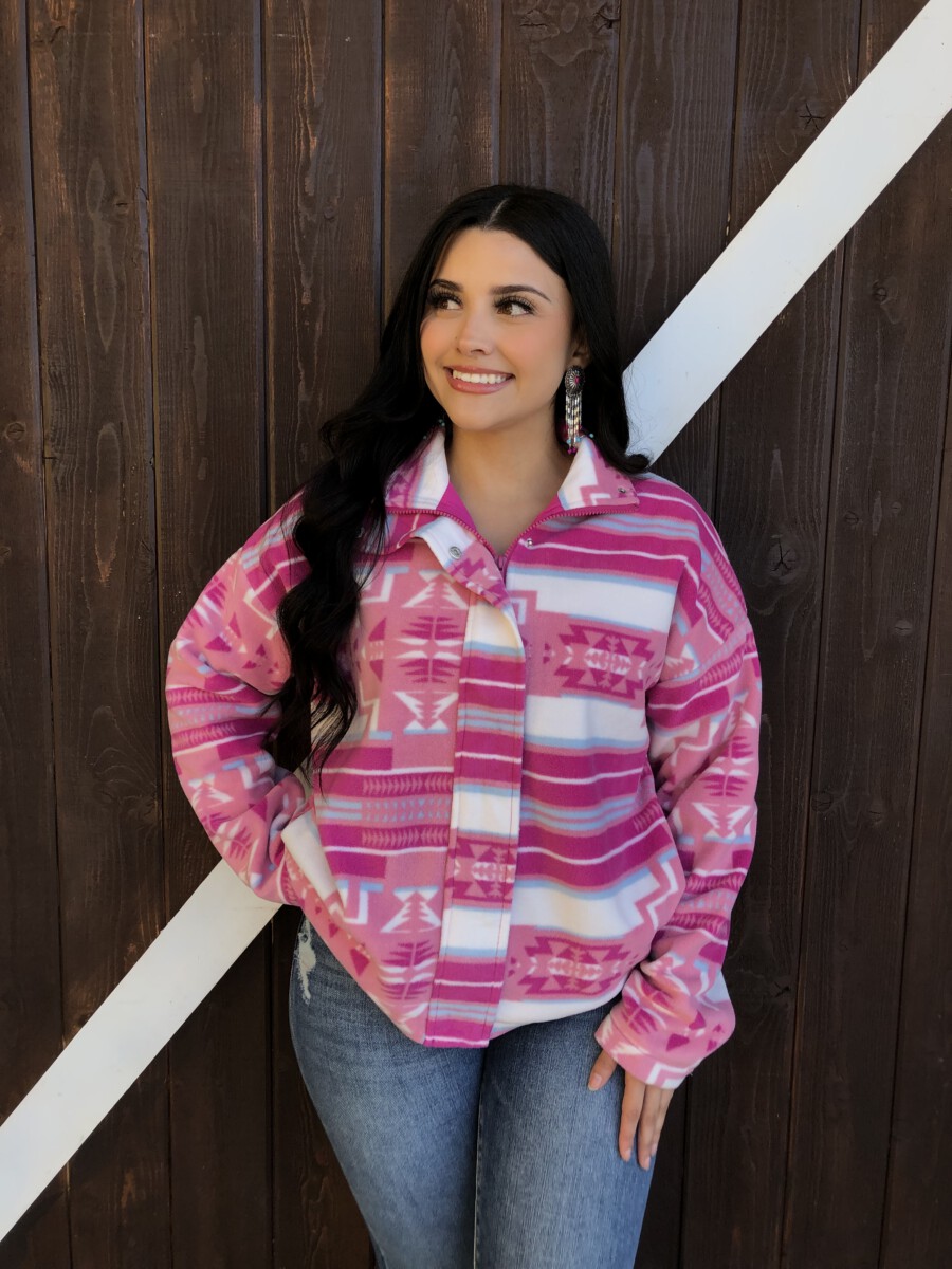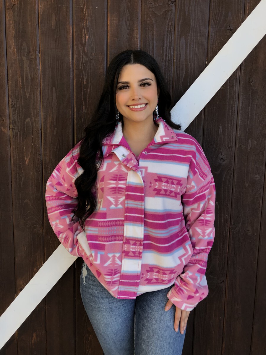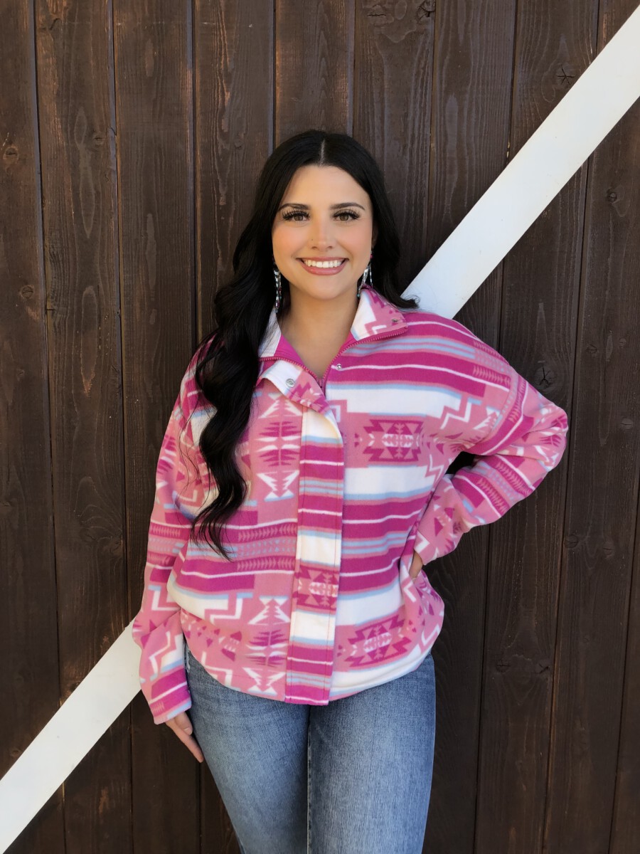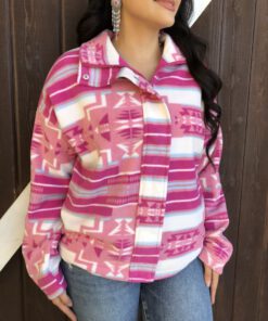 ” Jolina “Aztec Soft Cozy Zip Up Jacket ( Pink )