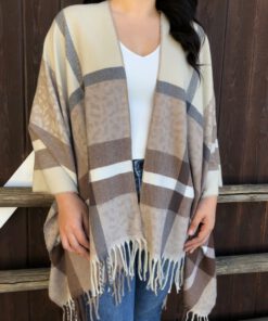 Be the first to review “” Cassandra ” Plaid & Leopard Fashion Cape ( Taupe )” Cancel reply