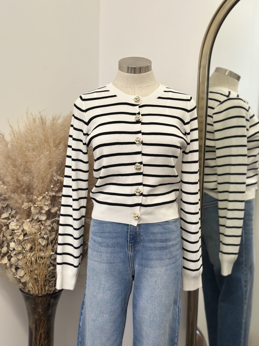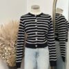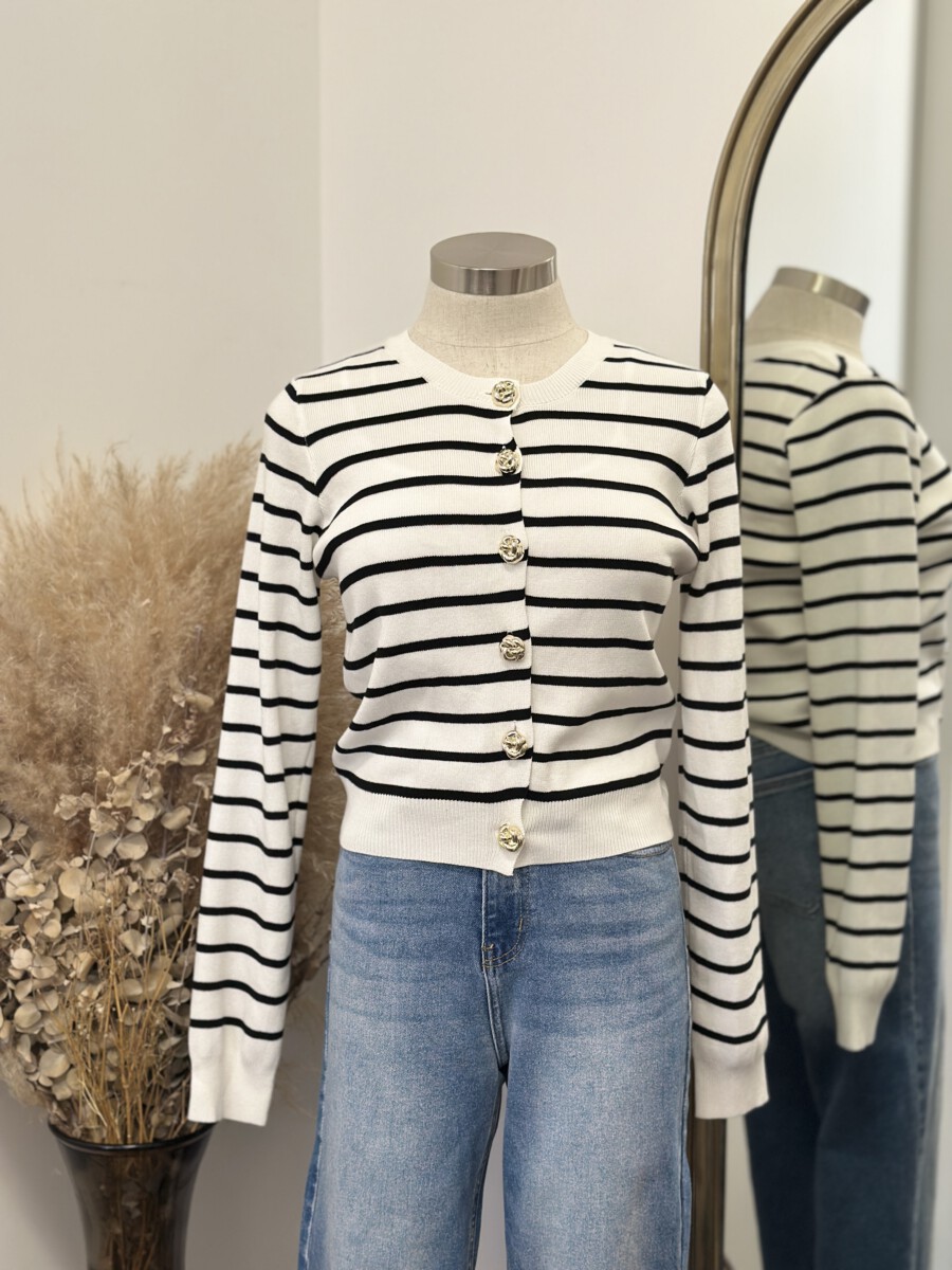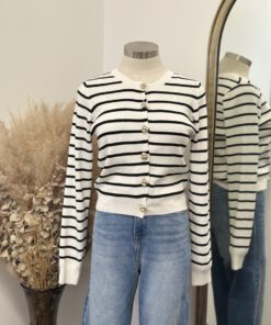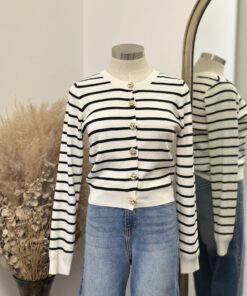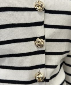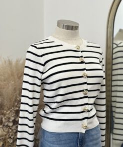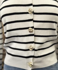 Be the first to review “” Elisandra ” Striped Cardigan W/gold Floral Button ( White / Black )” Cancel reply