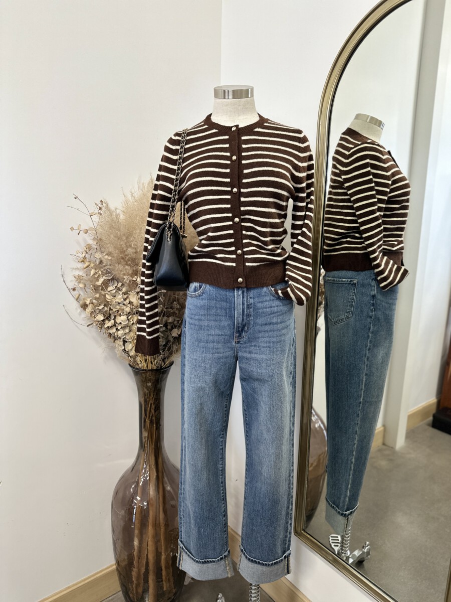 FEATURES - Golden Button Fastening, Long Sleeve Ribbed Cuffs & Waist
