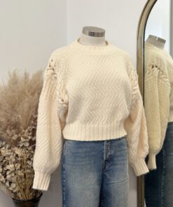 ” Rosalie ” Braided Hem Long Sleeve Sweater Top ( Cream )