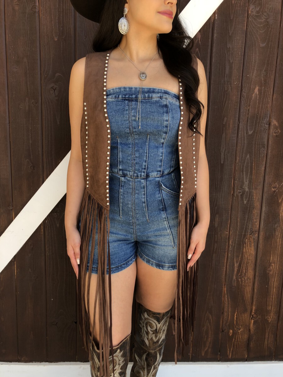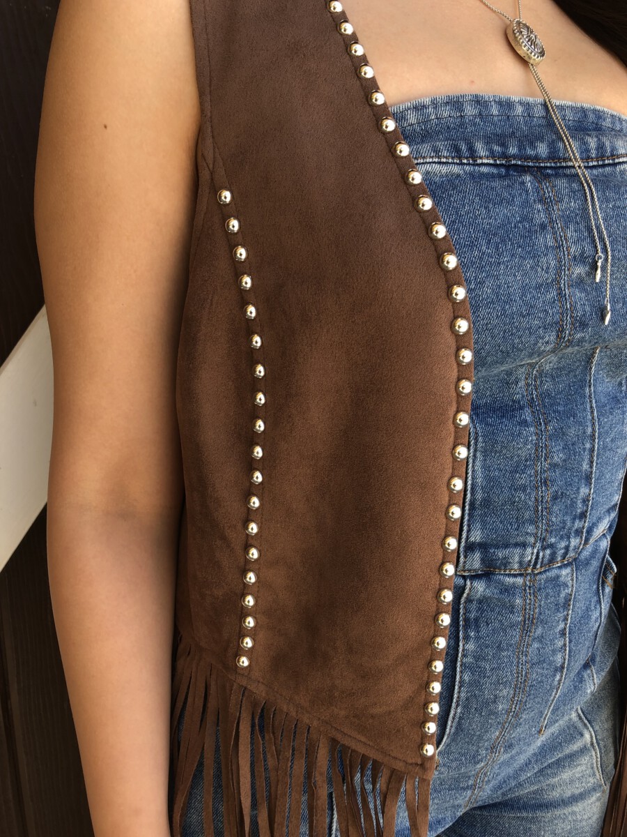 ” Gianna ” Fringe Studded Vest ( Chocolate Brown )