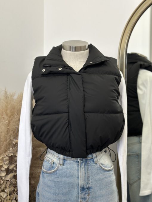 ” Haisley ” Cropped Puffer With Pockets ( Black )