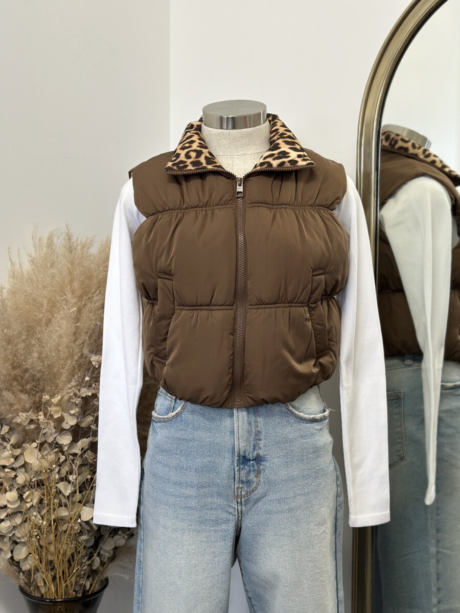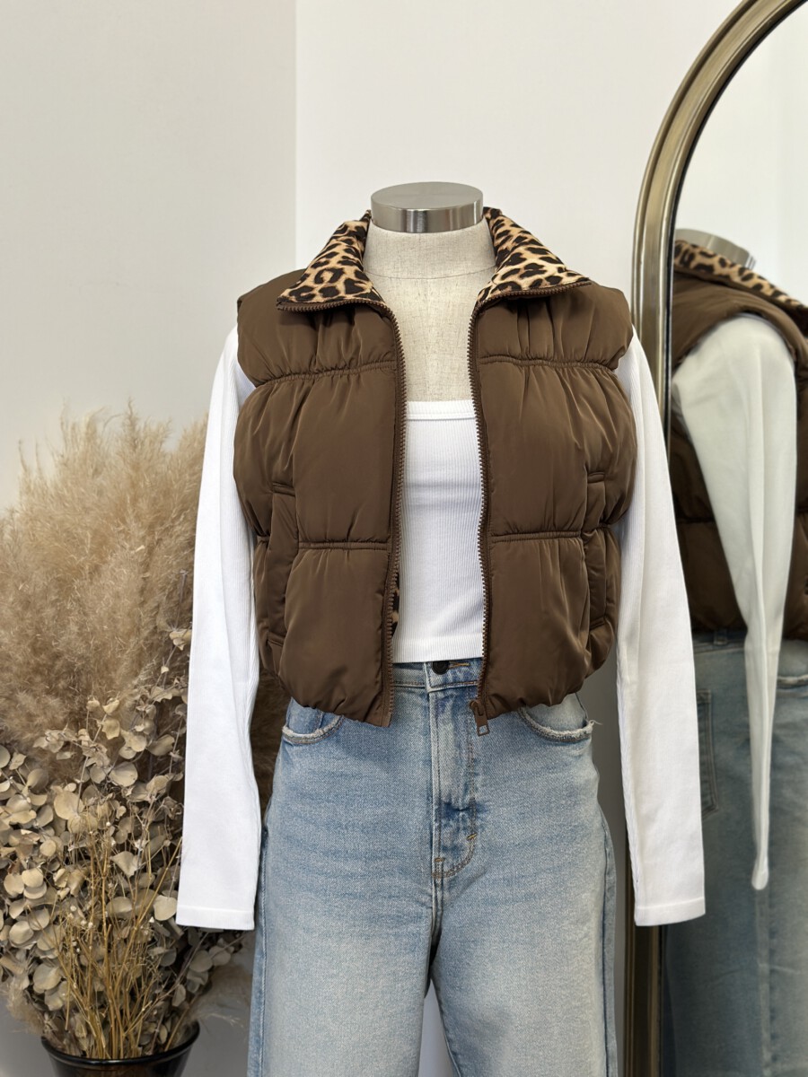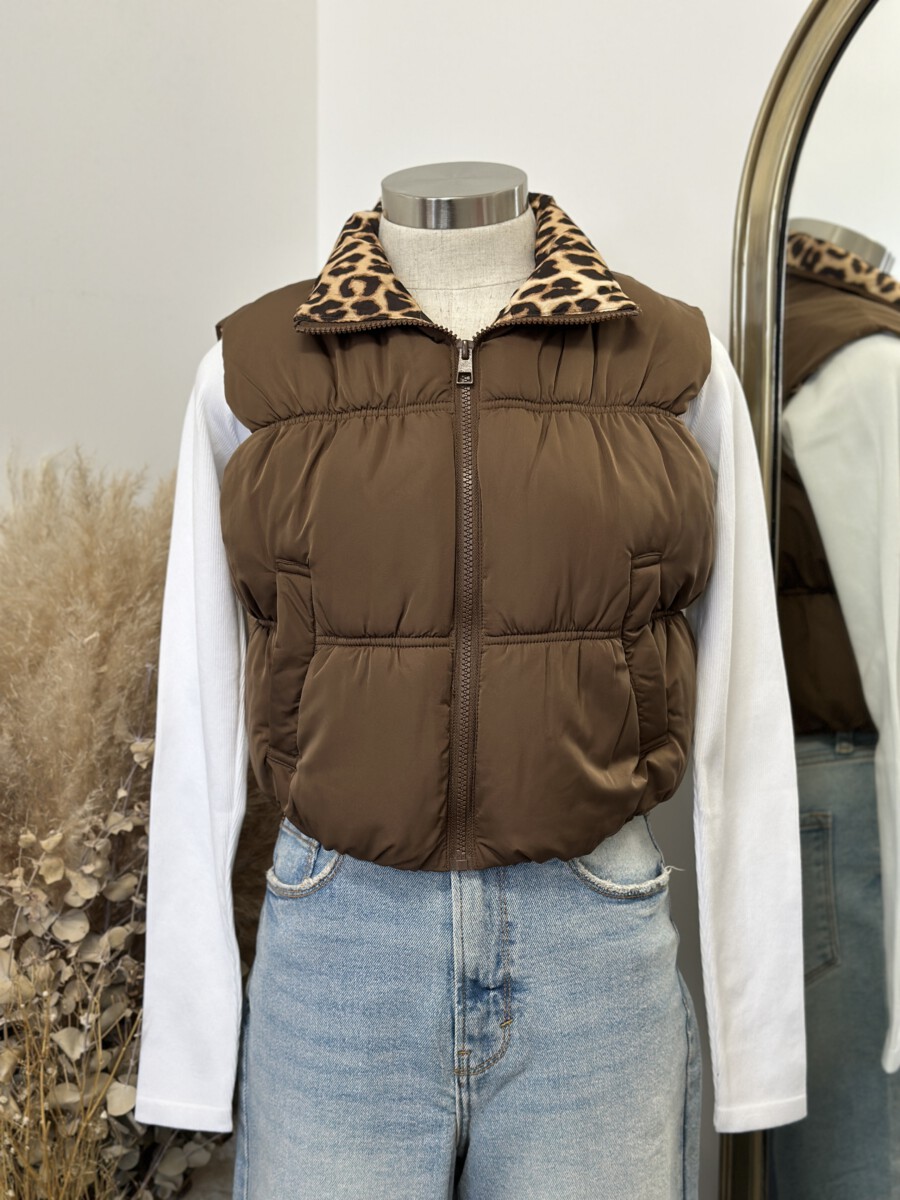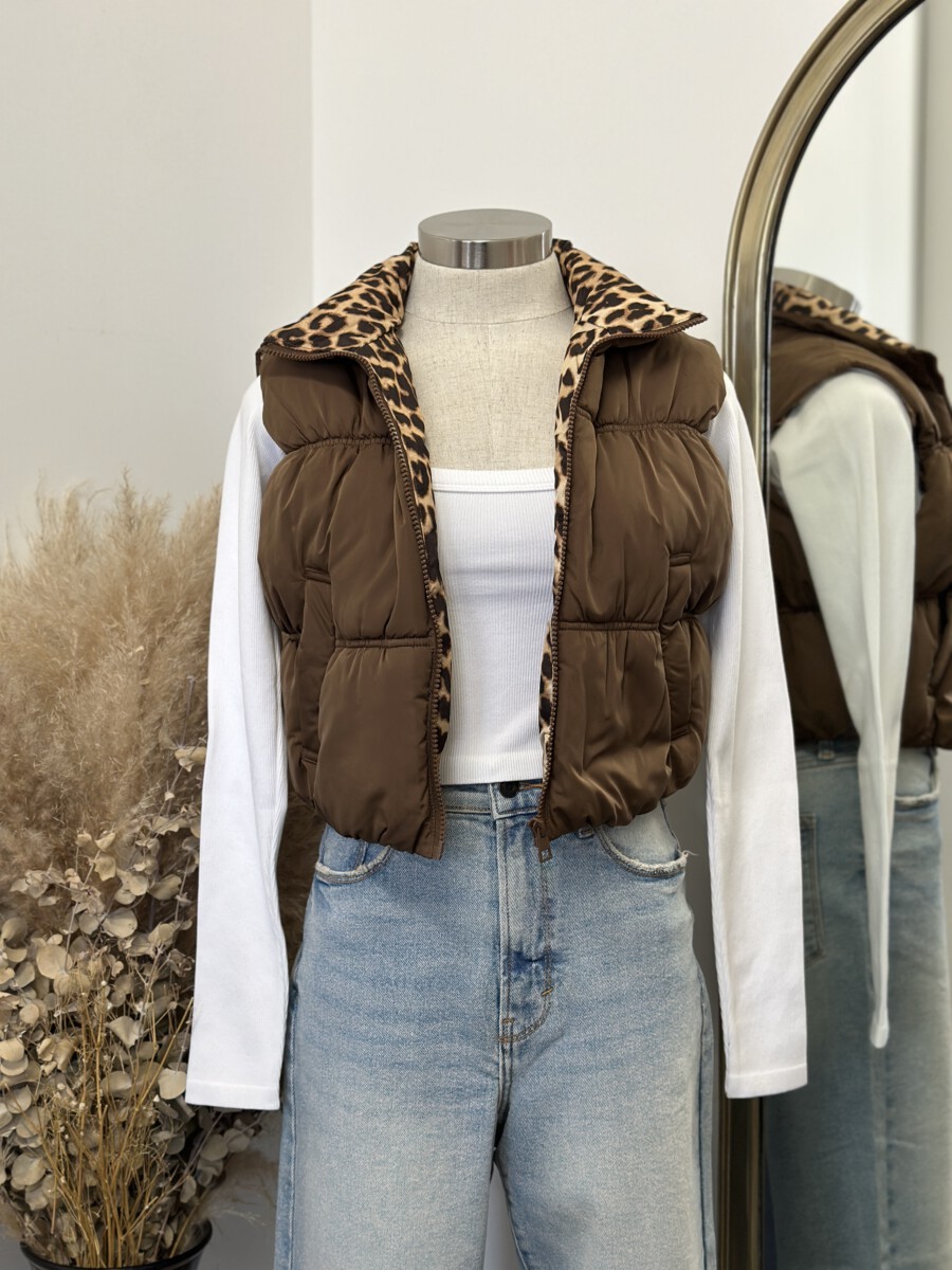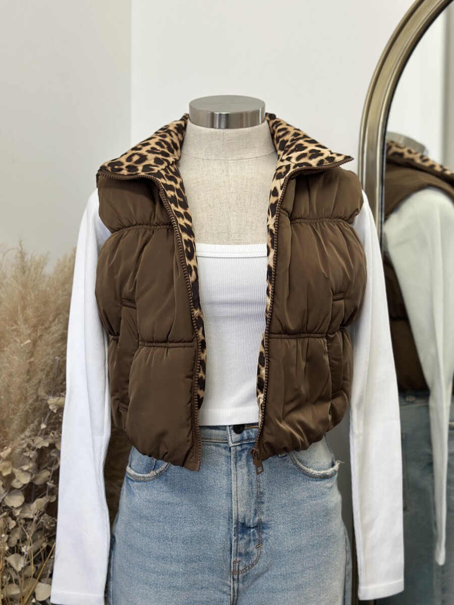 ” Juliette ” Quilted /Leopard Inside Vest ( Brown )