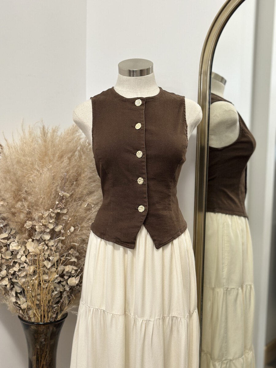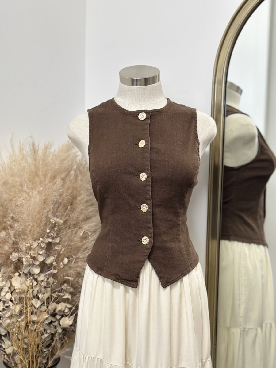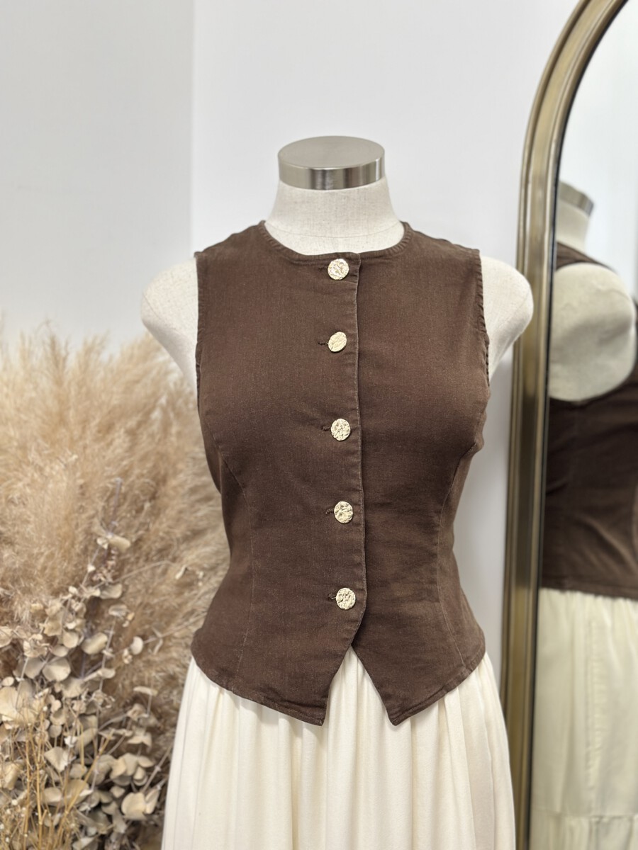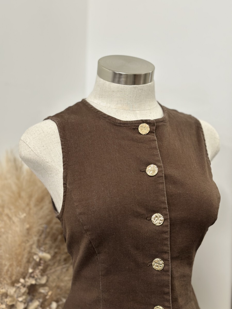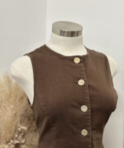 ” Kate ” Gold Button Denim Vest / Top ( Brown )