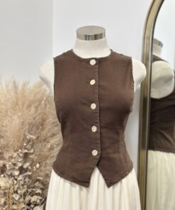 Be the first to review “” Kate ” Gold Button Denim Vest / Top ( Brown )” Cancel reply