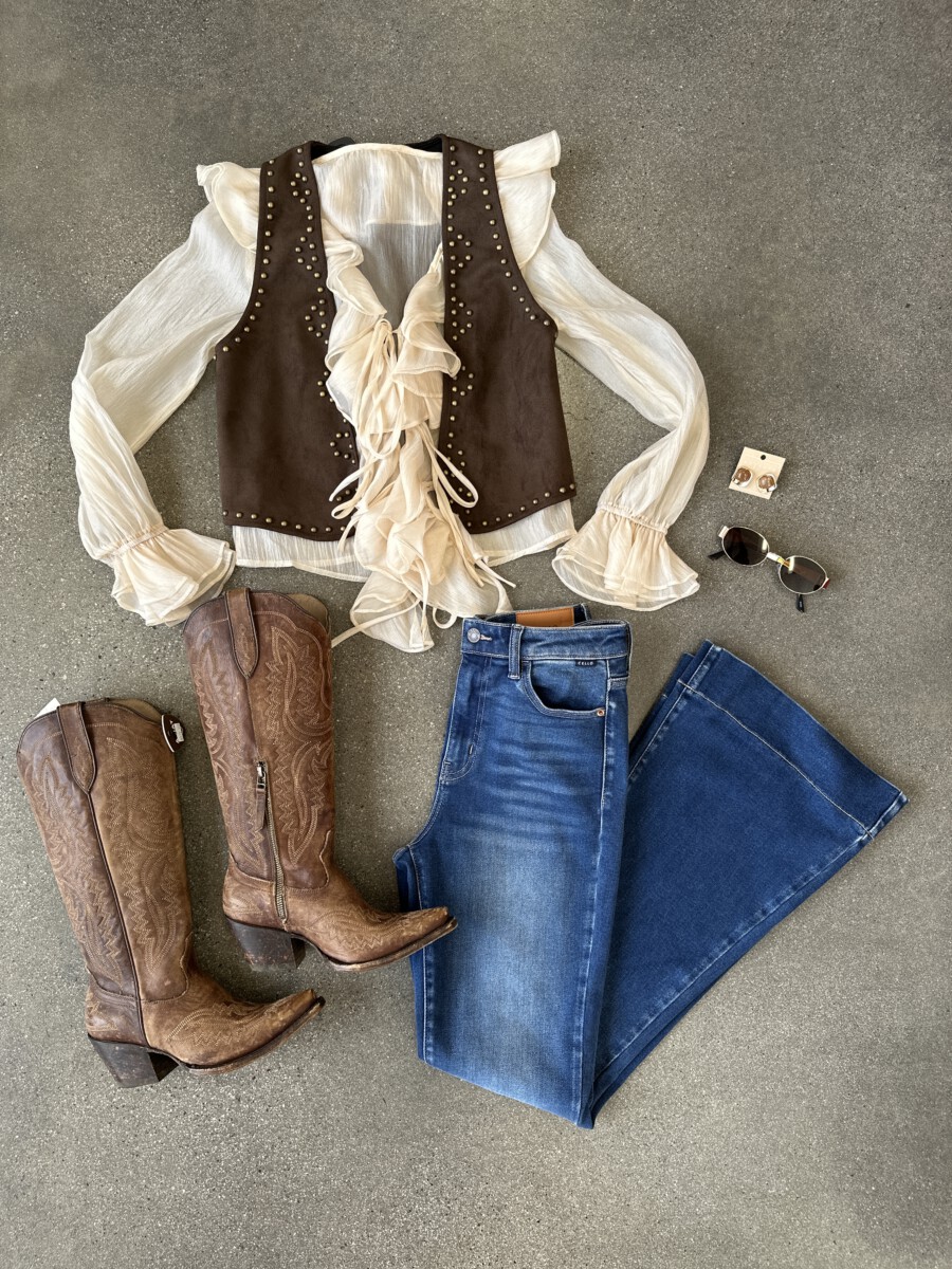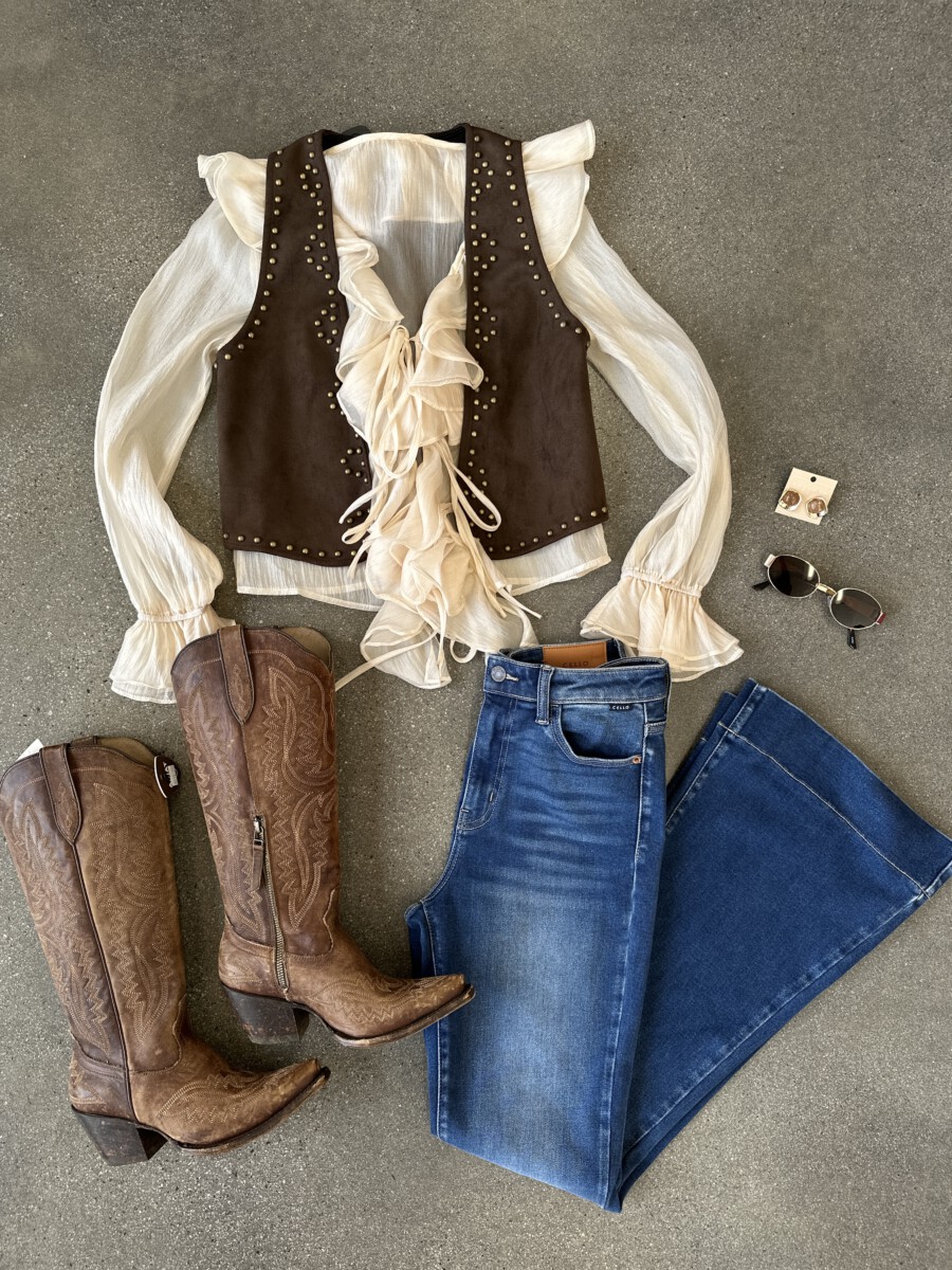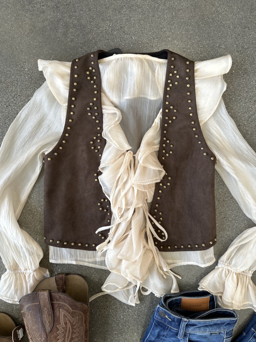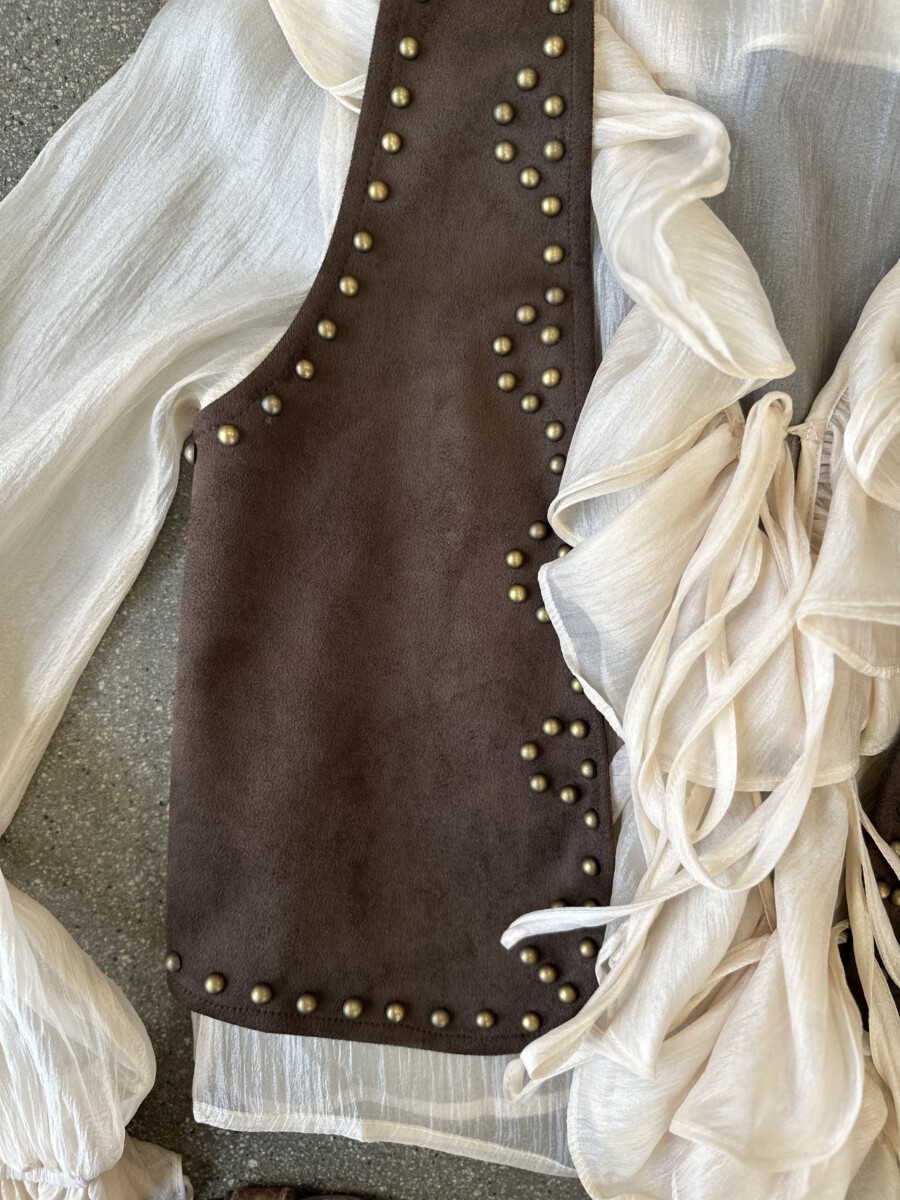 ” Tammie ” Faux Suede Vest W/ Studs ( Brown )