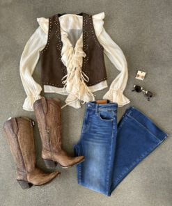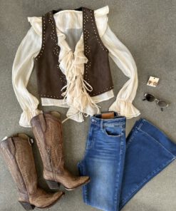 Be the first to review “” Tammie ” Faux Suede Vest W/ Studs ( Brown )” Cancel reply